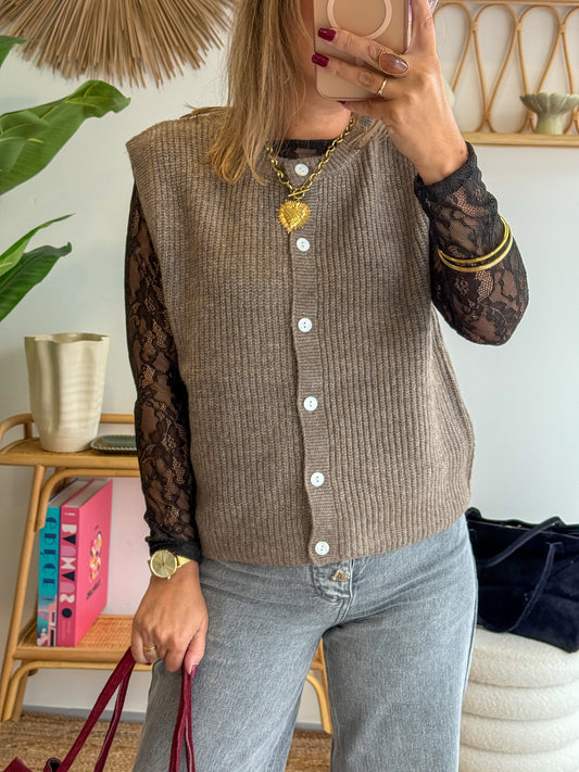 ÉpuiséGilet SOPHIE taupe