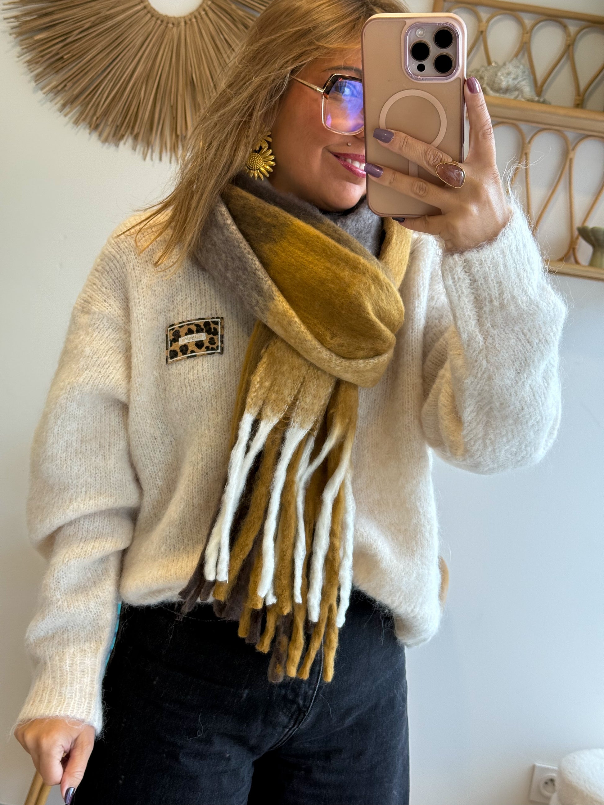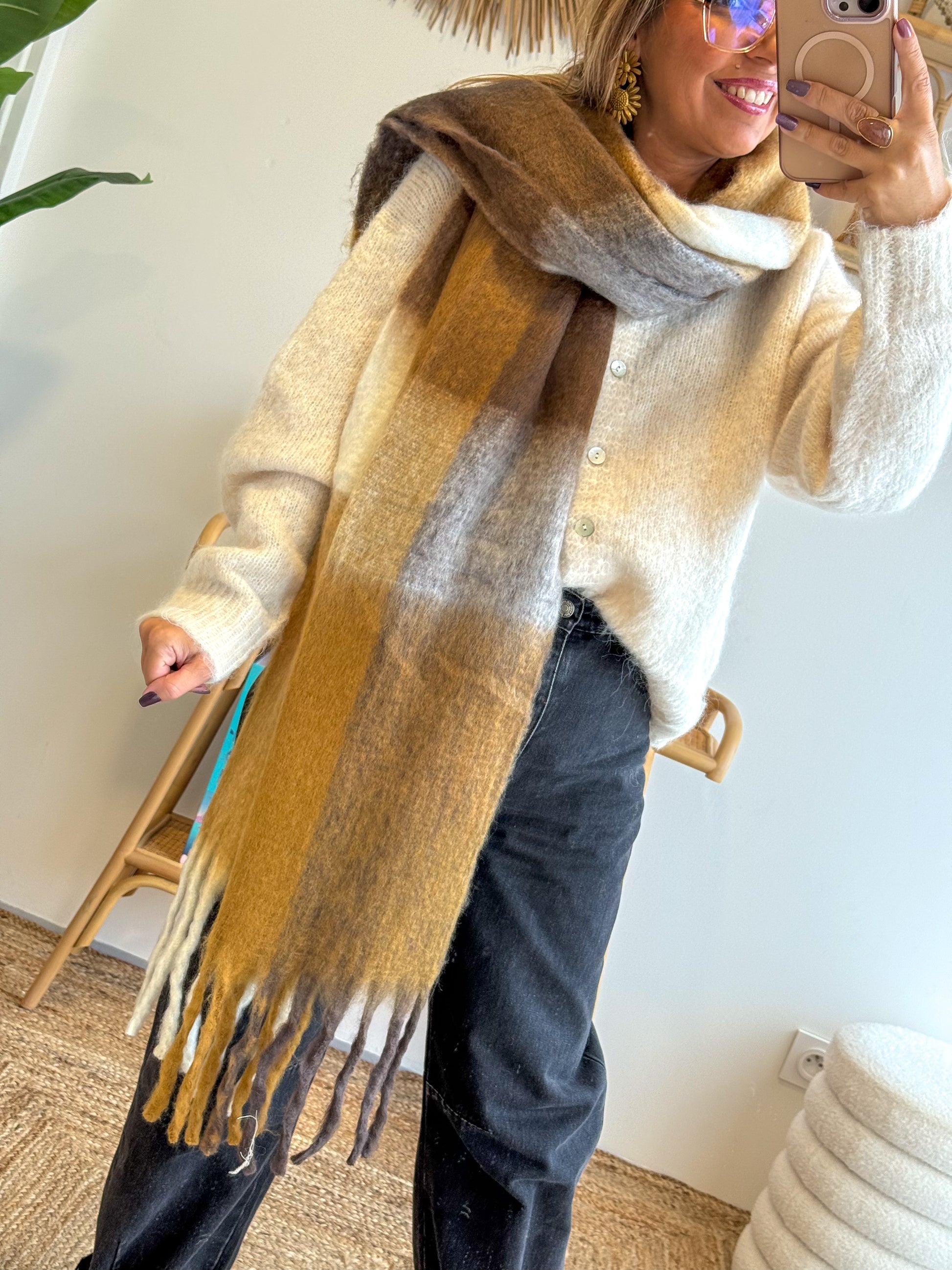 Portée enroulée autour du cou ou laissée longue, elle offre un joli volume tout en restant légère.