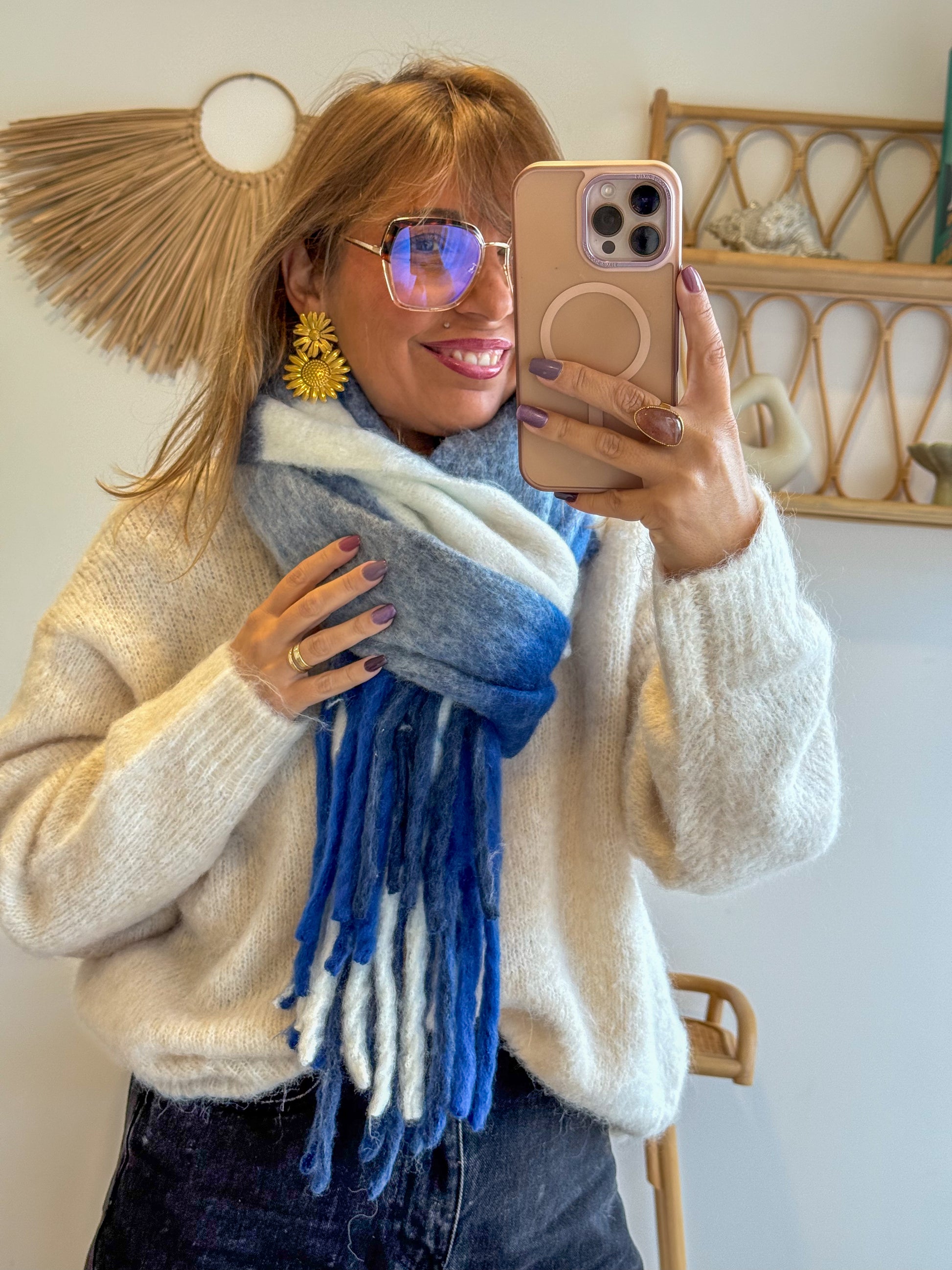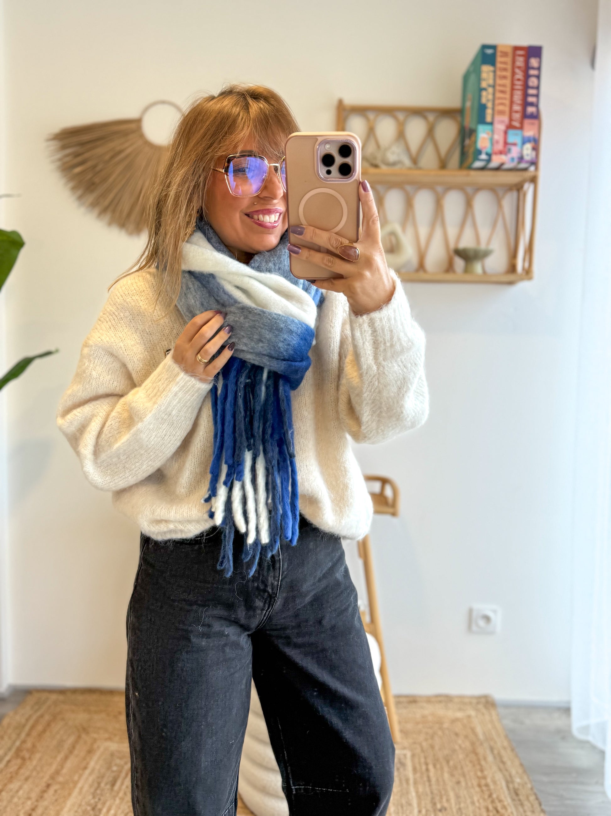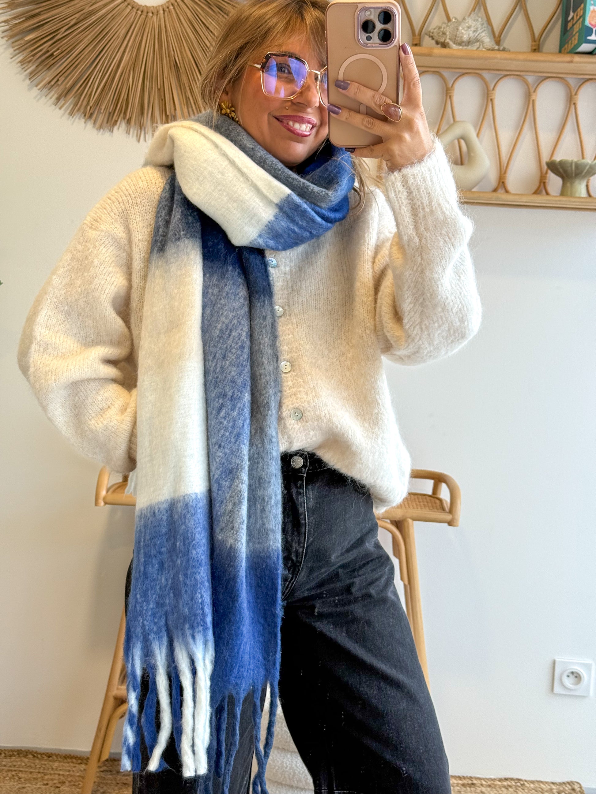 Portée enroulée autour du cou ou laissée longue, elle offre un joli volume tout en restant légère.