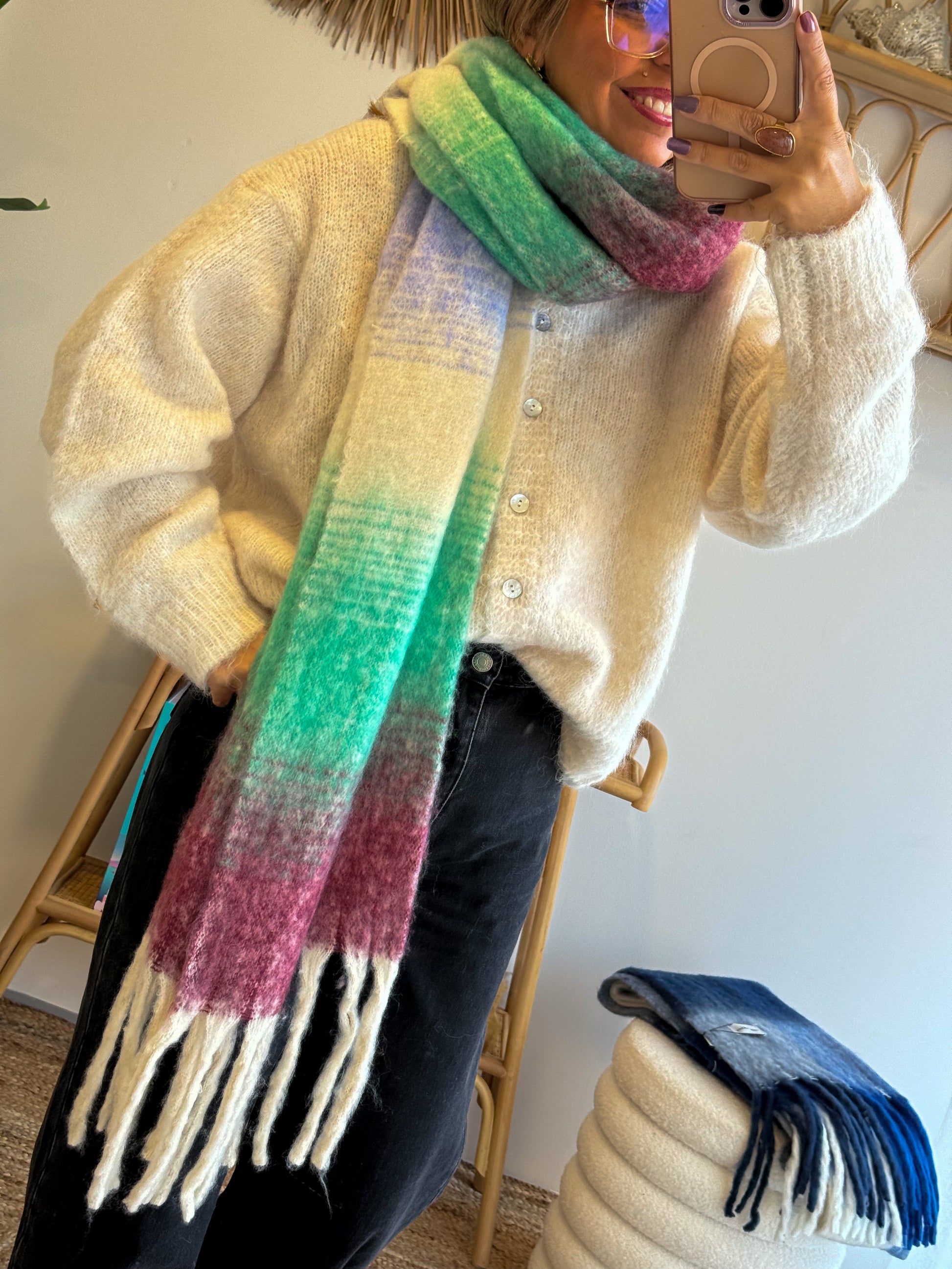 Portée enroulée autour du cou ou laissée longue, elle offre un joli volume tout en restant légère.