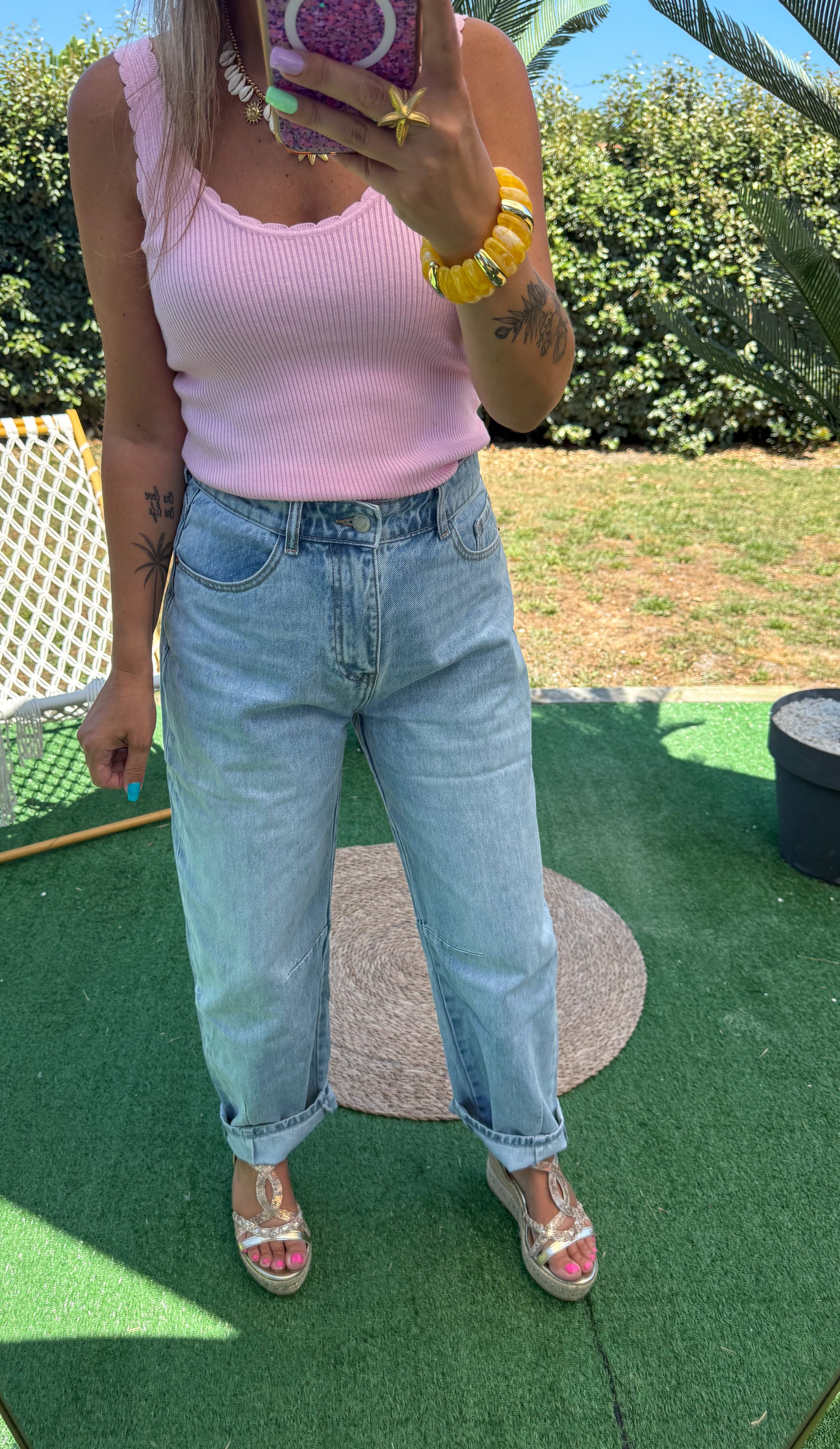 Craquez pour le jean BRANDY, le parfait mélange entre style décontracté et esprit vintage. Sa coupe droite légèrement ample et sa taille haute flattent toutes les morphologies, tandis que son délavage clair donne un effet 90’s très actuel. Un essentiel du dressing à twister selon vos envies !