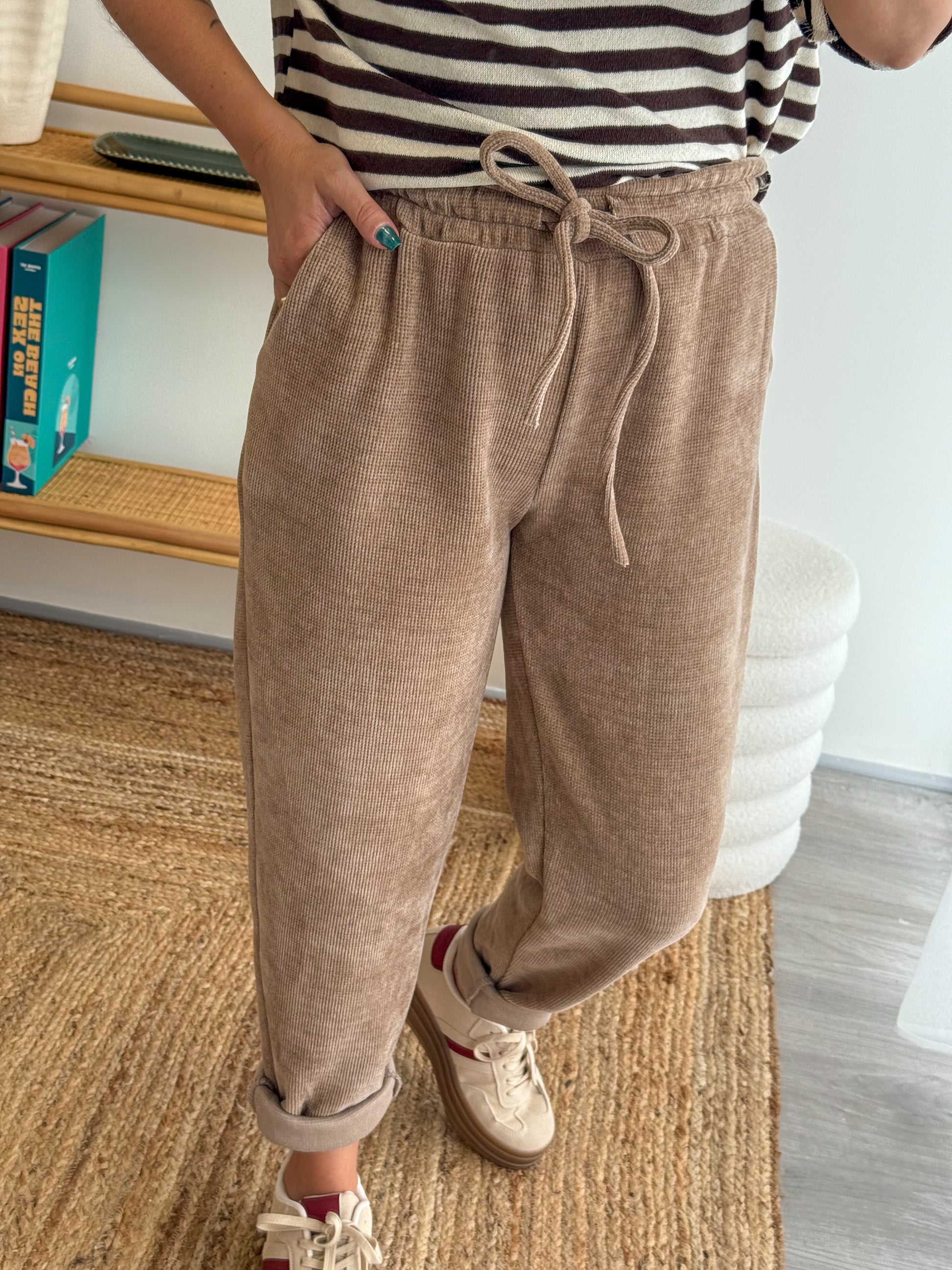 - Jogging en velours côtelé taupe