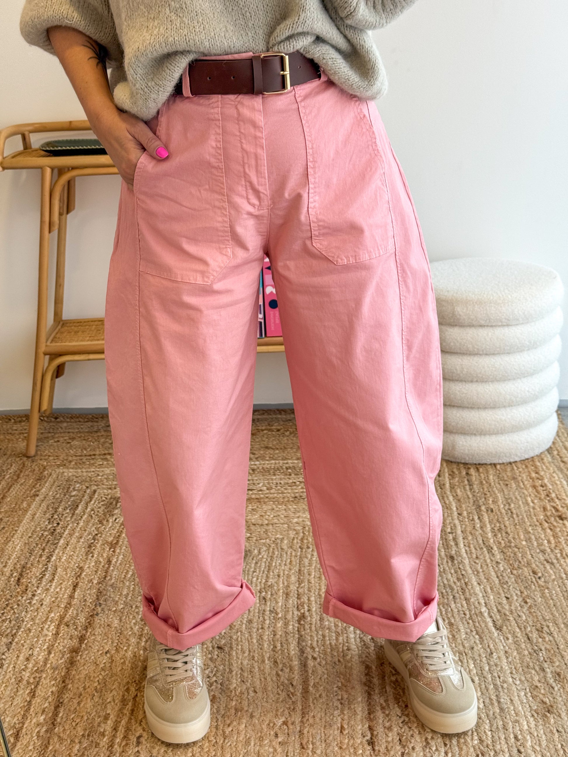 Avec sa taille haute flatteuse, sa coupe large ultra tendance et ses grandes poches plaquées à l’avant, il structure la silhouette tout en restant confortable au quotidien.
