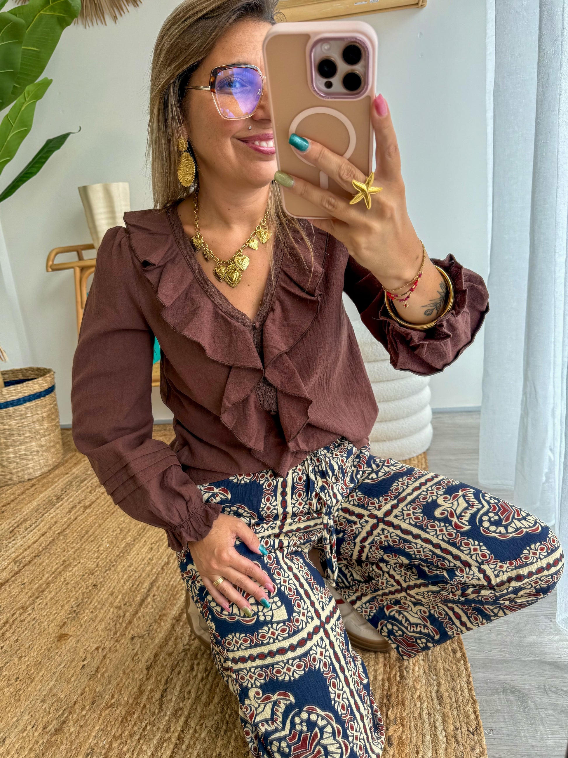 Adoptez le style bohème avec le Pantalon romane , une pièce fluide et confortable qui allie élégance et originalité.