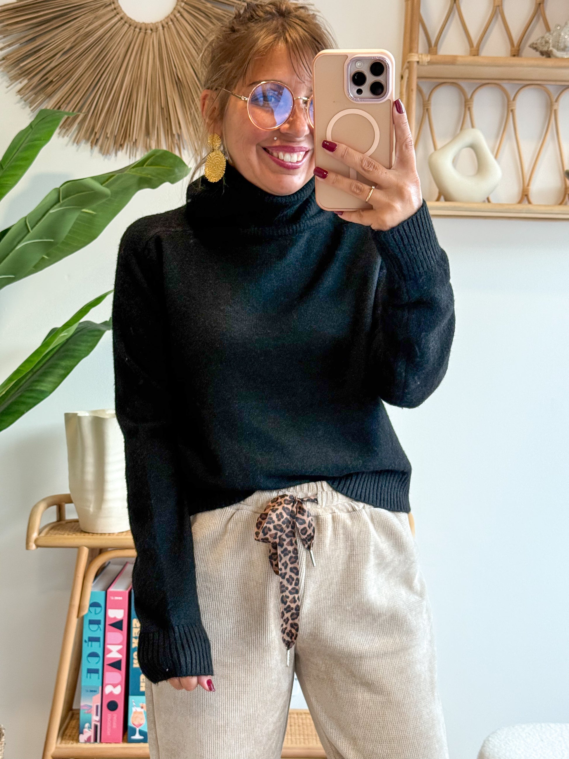 Sa coupe légèrement loose et son col roulé apportent une touche cosy, tandis que sa maille toute douce offre un vrai cocon de confort.
