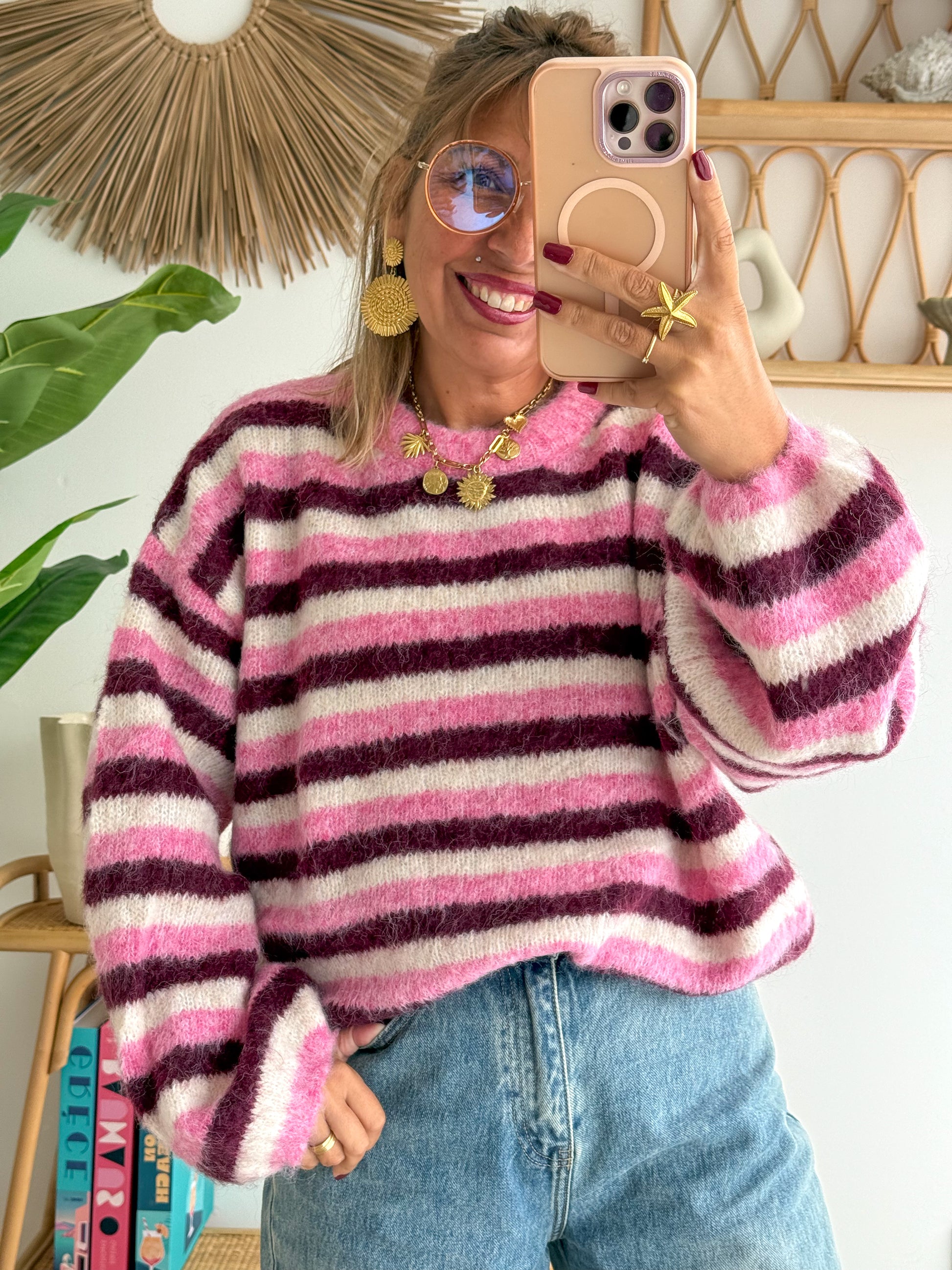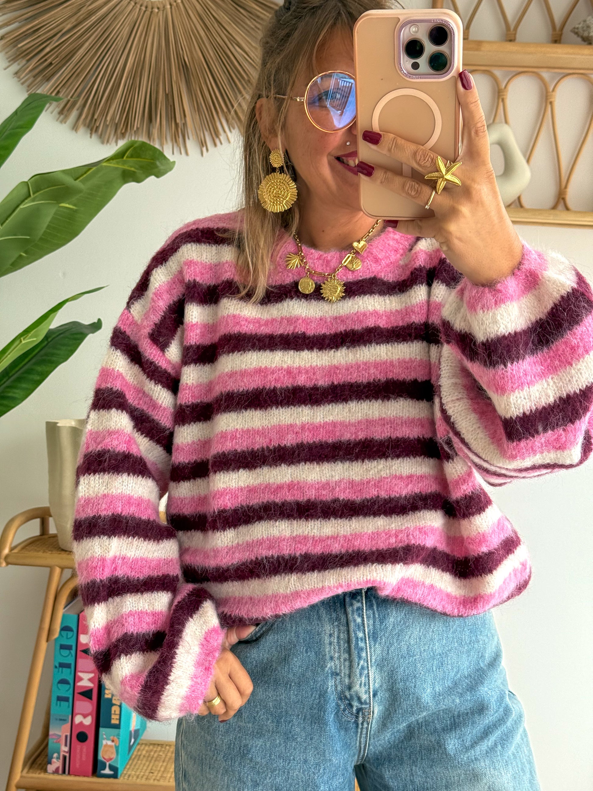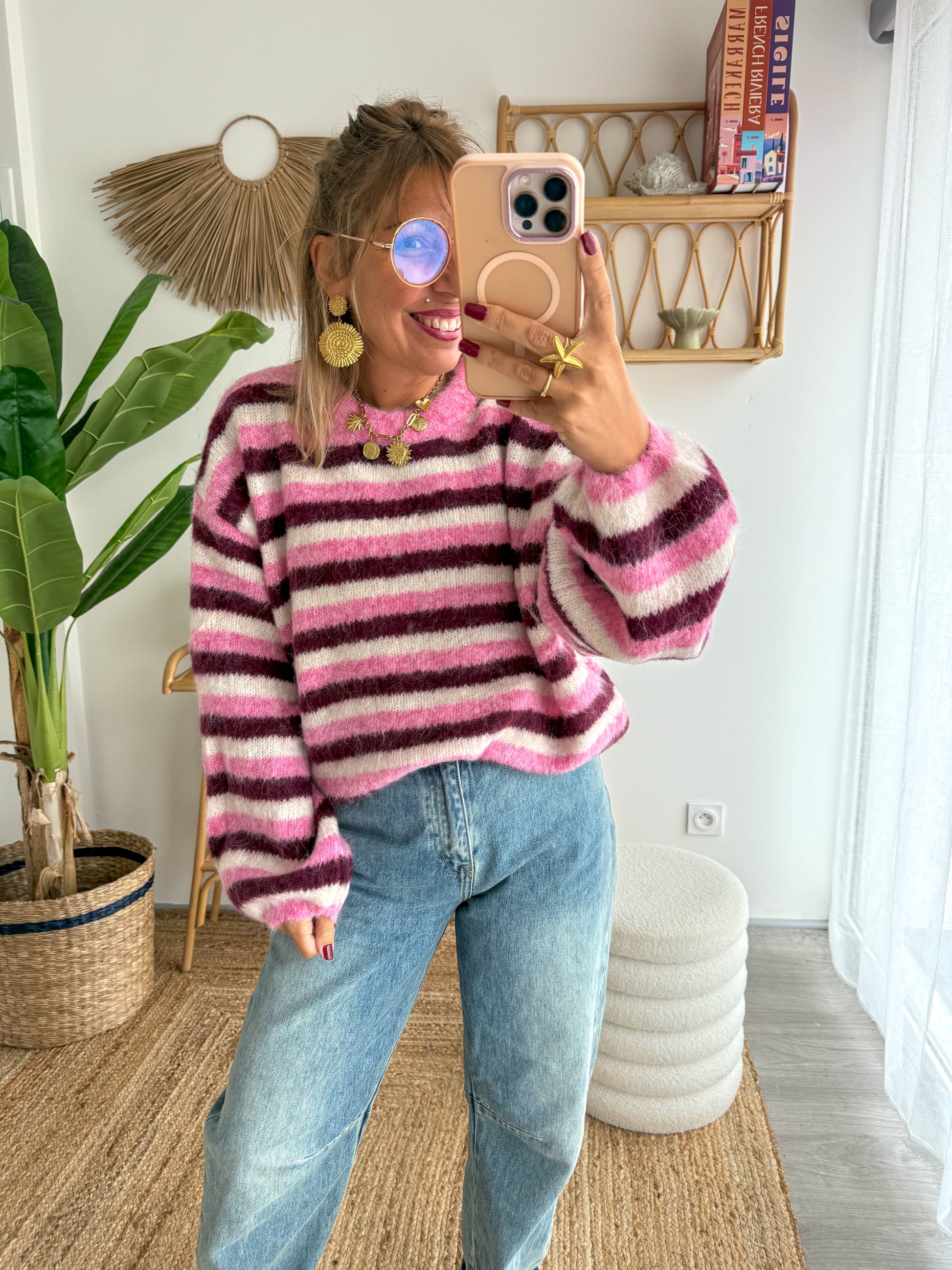 Le Pull SWEET séduit par ses rayures pleines de peps et sa maille toute douce qui donne envie de s’y blottir.