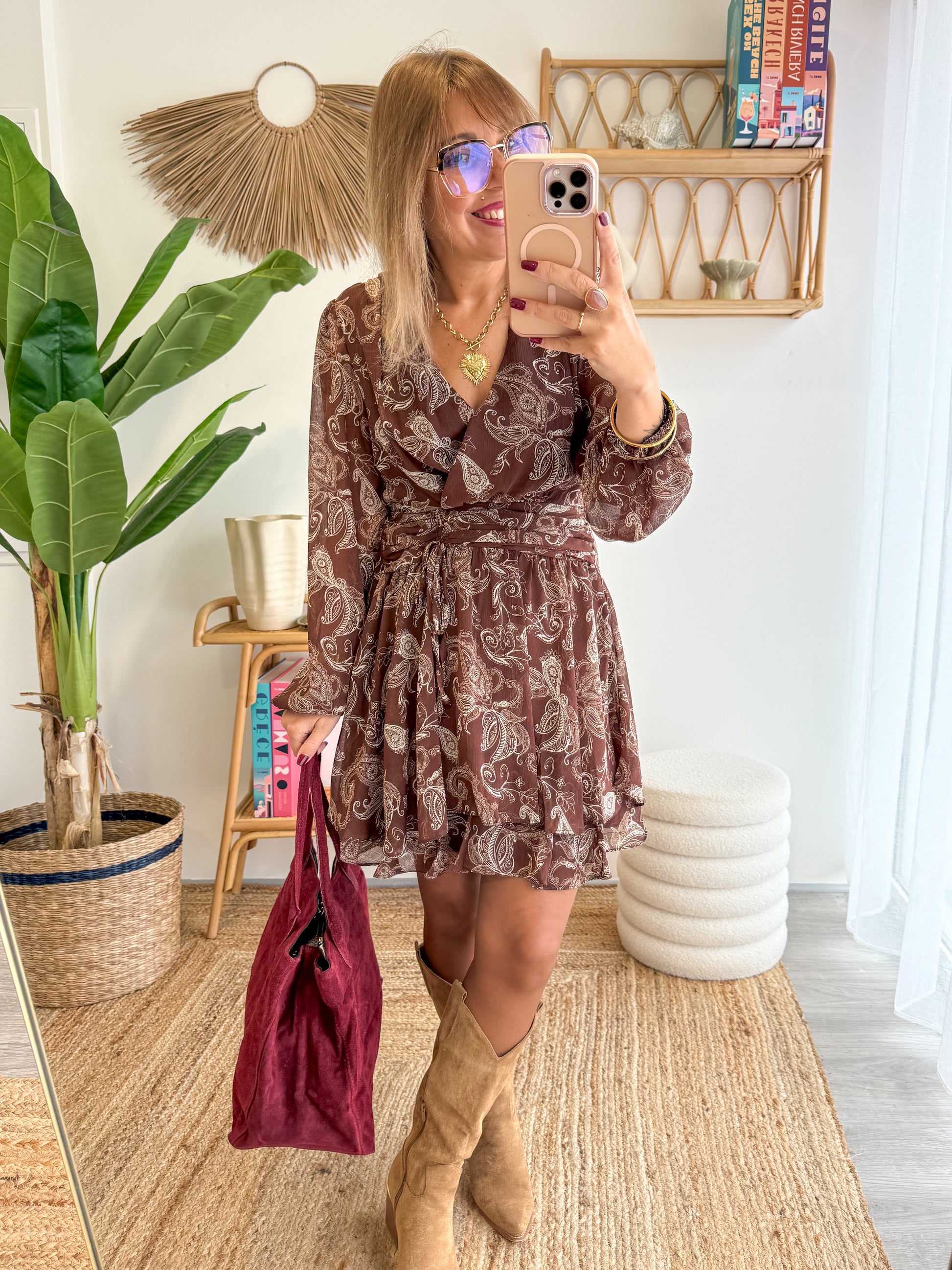 Craquez pour la robe Brownie, une pièce ultra féminine et pleine de charme aux doux tons chocolat.