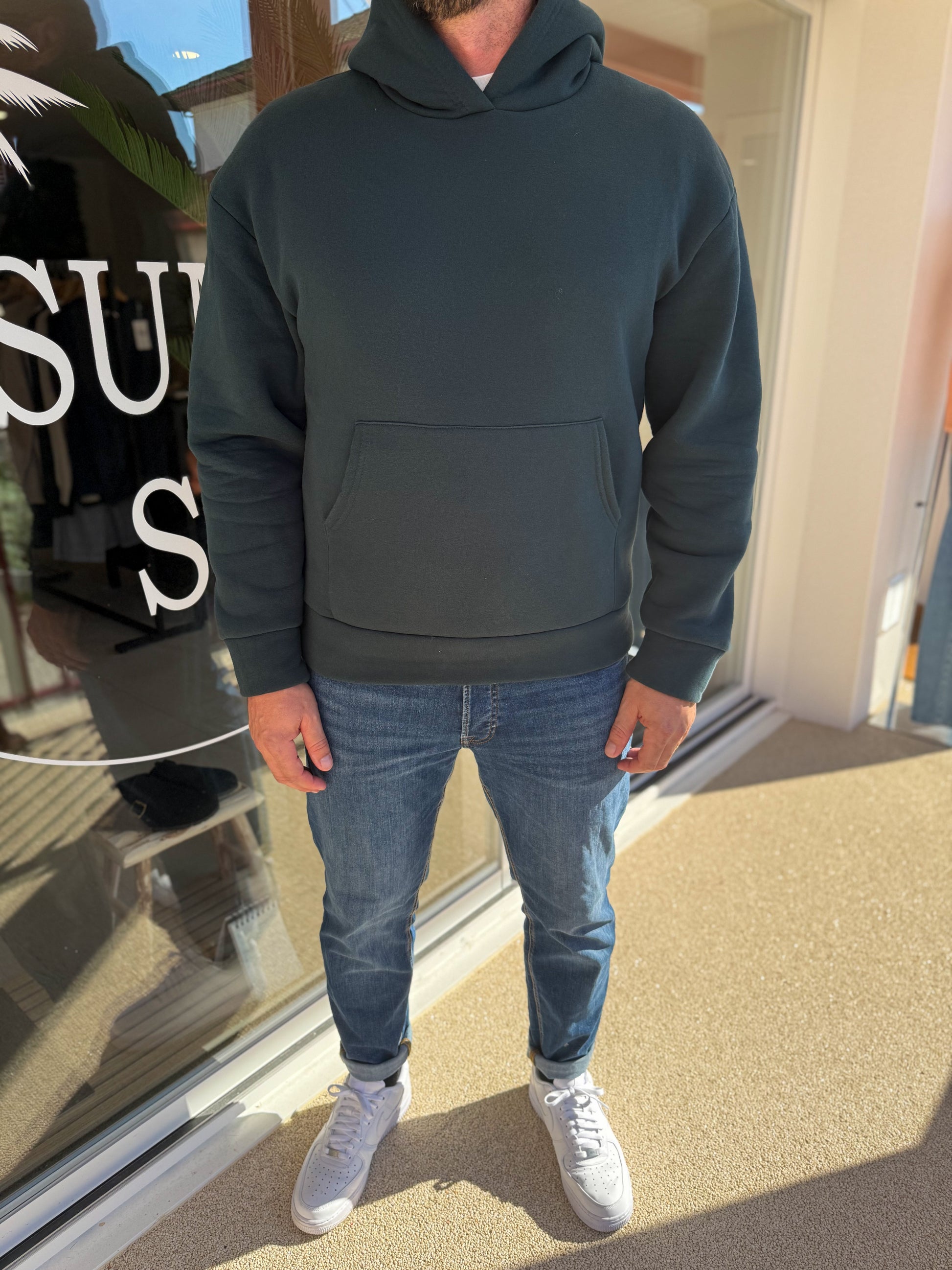 Optez pour un look casual et intemporel avec notre sweat à capuche vert sapin. Confortable et doux, il est conçu pour vous accompagner au quotidien, que ce soit pour une sortie détente ou un style urbain affirmé. Sa coupe moderne et sa couleur sobre en font une pièce facile à associer avec un jean ou un pantalon plus habillé.
