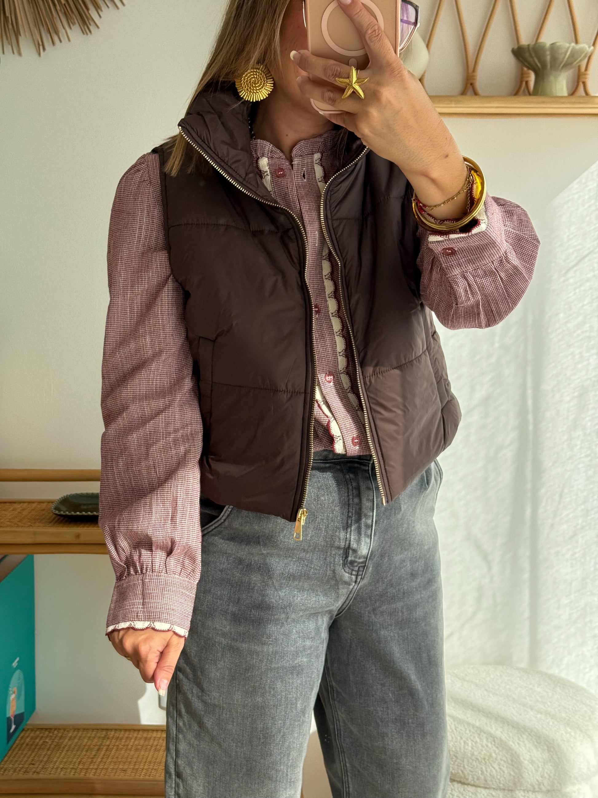 Ajoutez une touche tendance et cosy à vos looks avec notre doudoune sans manches marron.