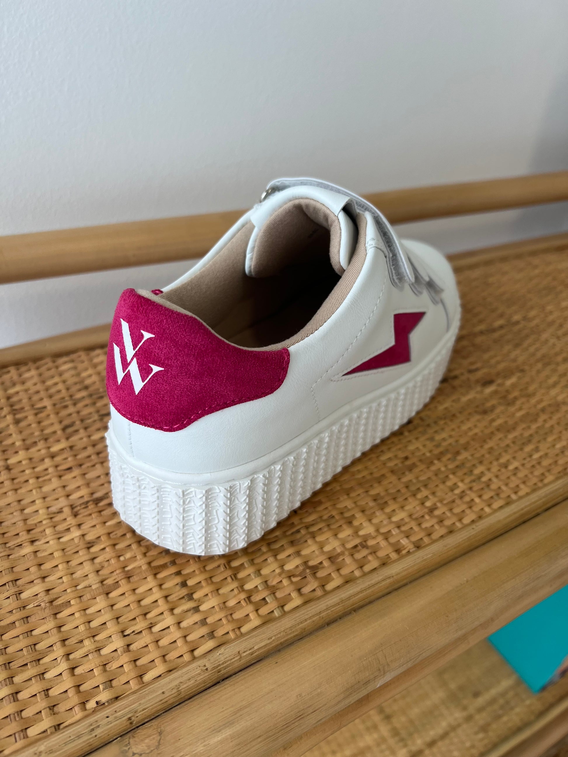 - Découpe en forme d'éclair et patch arrière en suédine fushia
