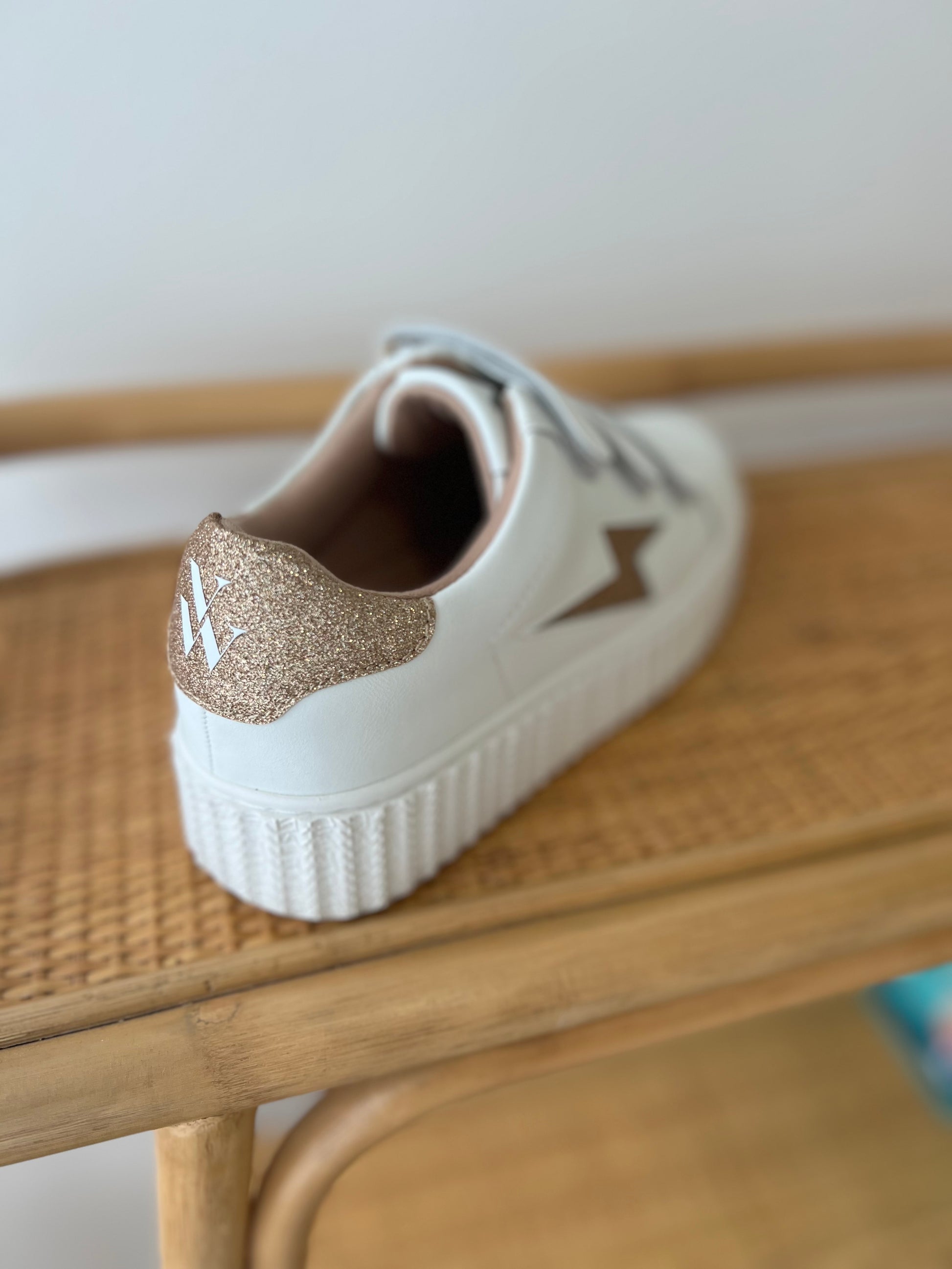 - Baskets en similicuir blanc