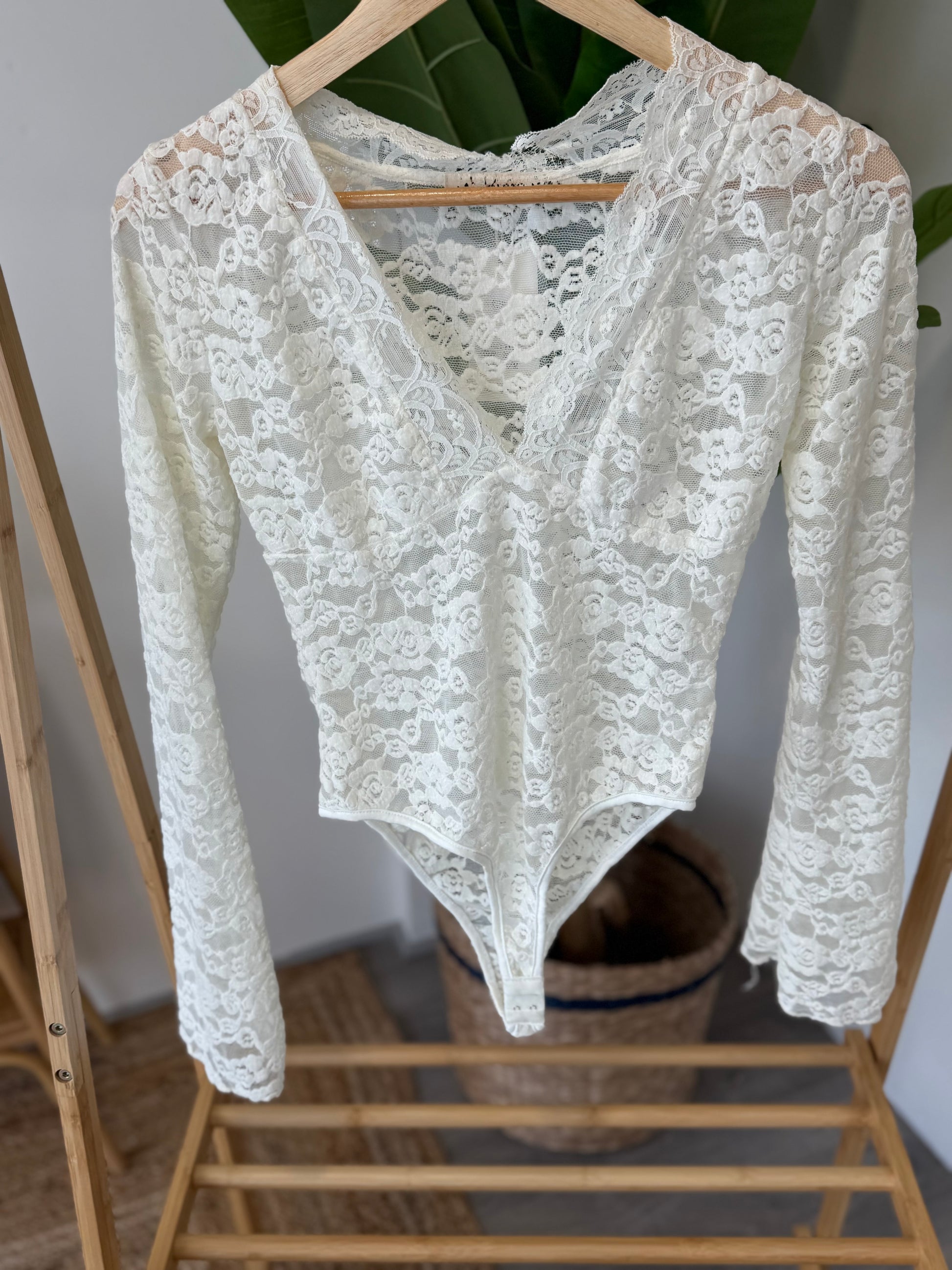 Sensuel et élégant, le body Lou sublime la silhouette avec sa dentelle écru délicate et son décolleté profond.