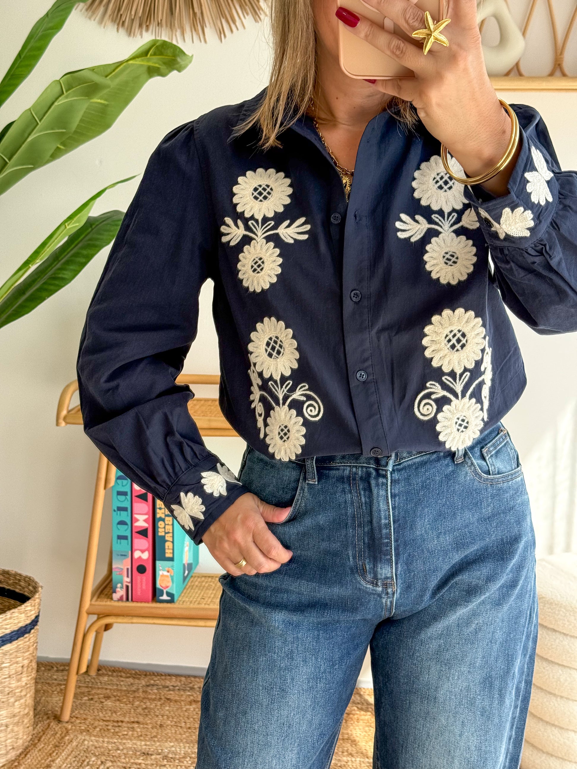La chemise Florencia séduit par son style élégant et bohème. Son tissu fluide est rehaussé de superbes broderies florales contrastées sur le devant et au niveau des poignets, apportant une touche unique et raffinée. Avec sa coupe droite et son col classique, elle se porte aussi bien au bureau qu’en sortie décontractée.