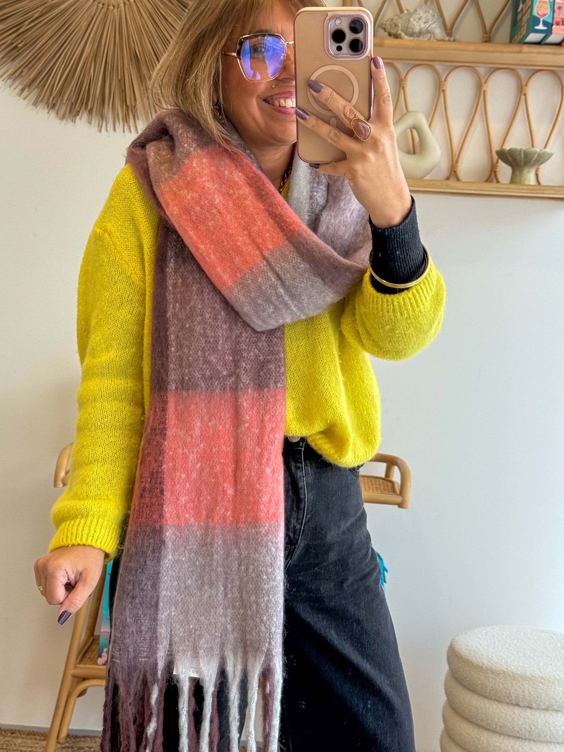 Portée enroulée autour du cou ou laissée longue, elle offre un joli volume tout en restant légère.