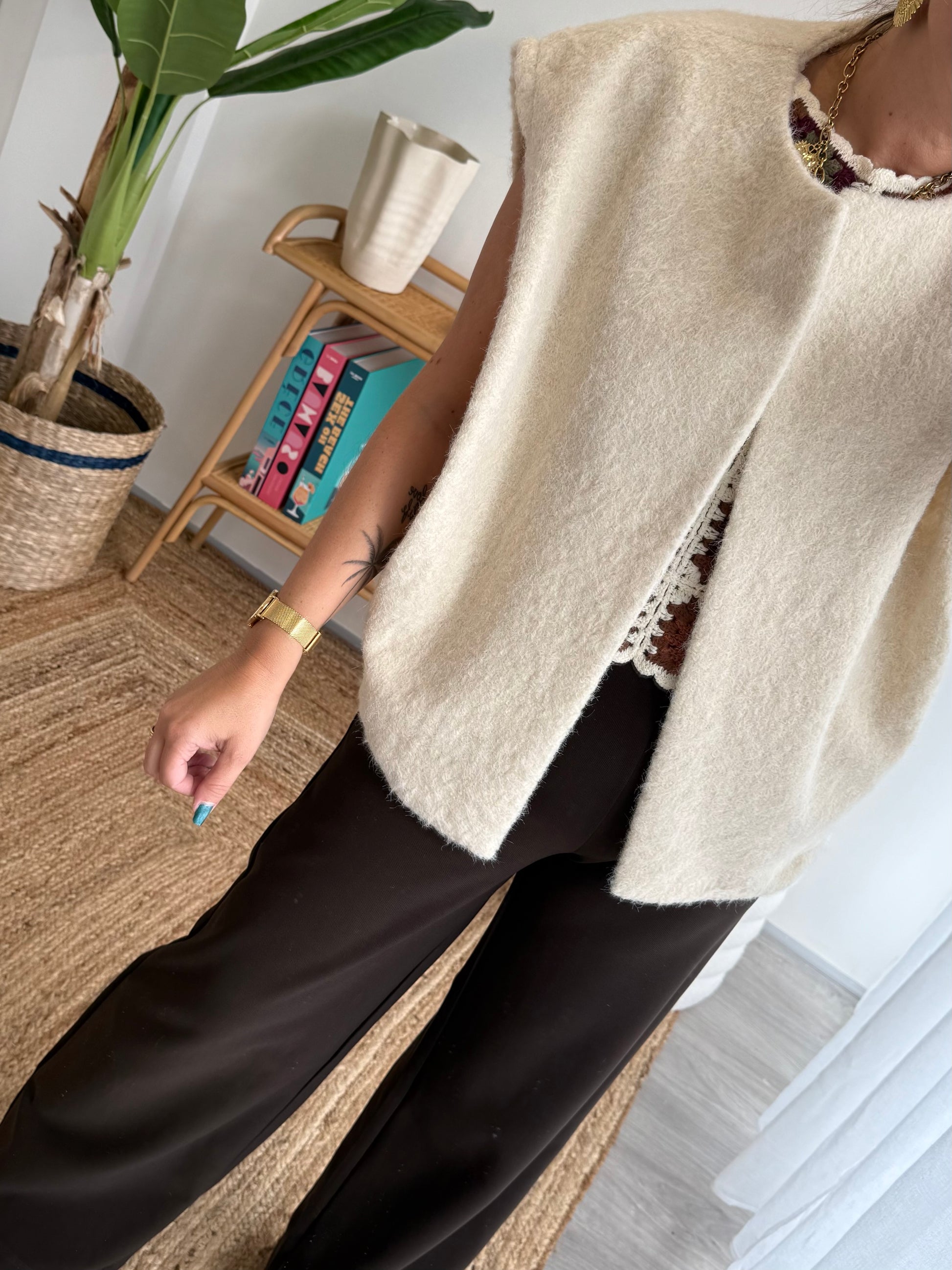 Avec sa coupe droite et sans manches, il se porte facilement en superposition sur vos chemises, pulls ou robes pour apporter chaleur et style. Son effet teddy tout doux lui confère un look cosy et tendance, parfait pour la mi-saison.