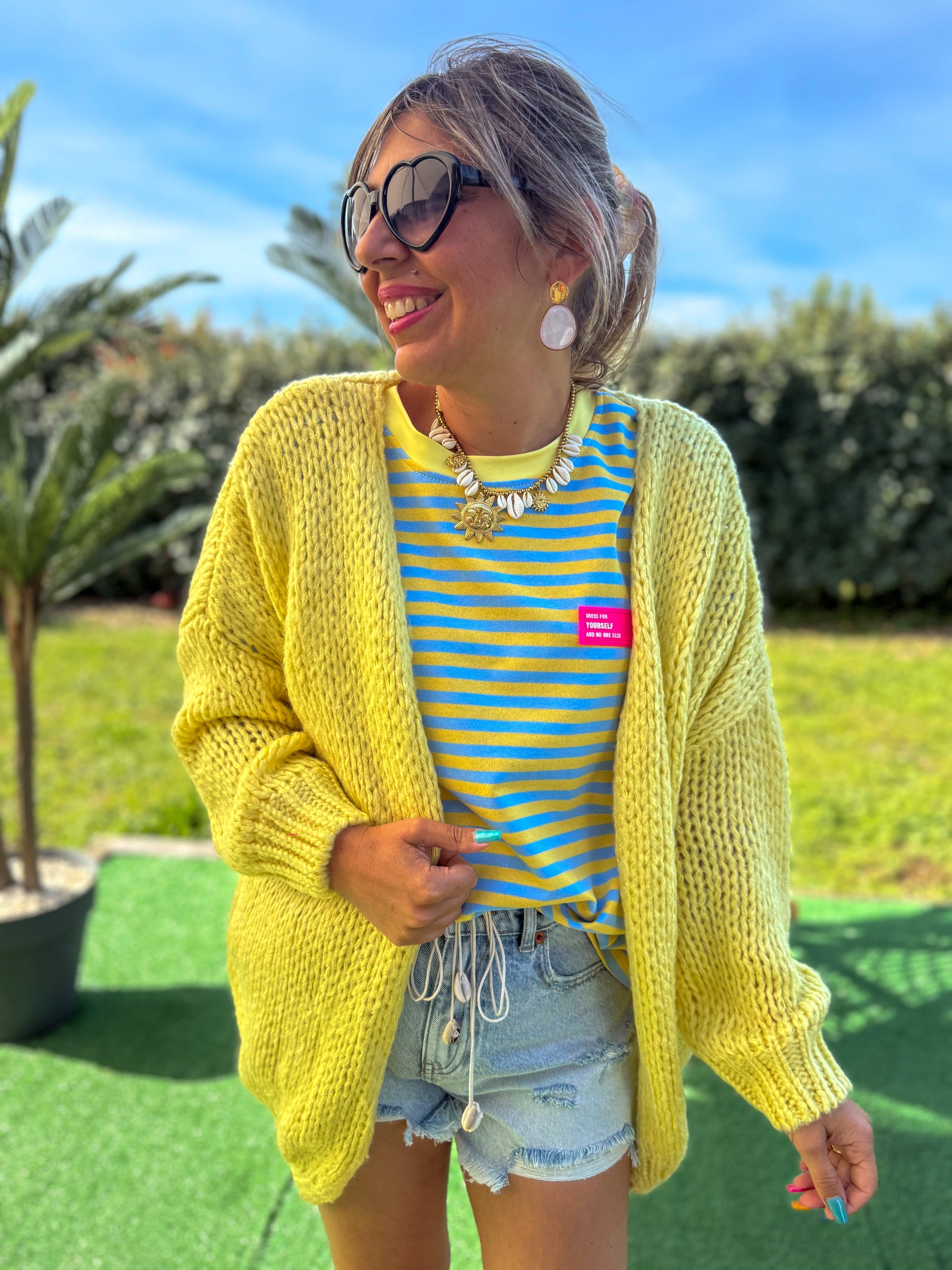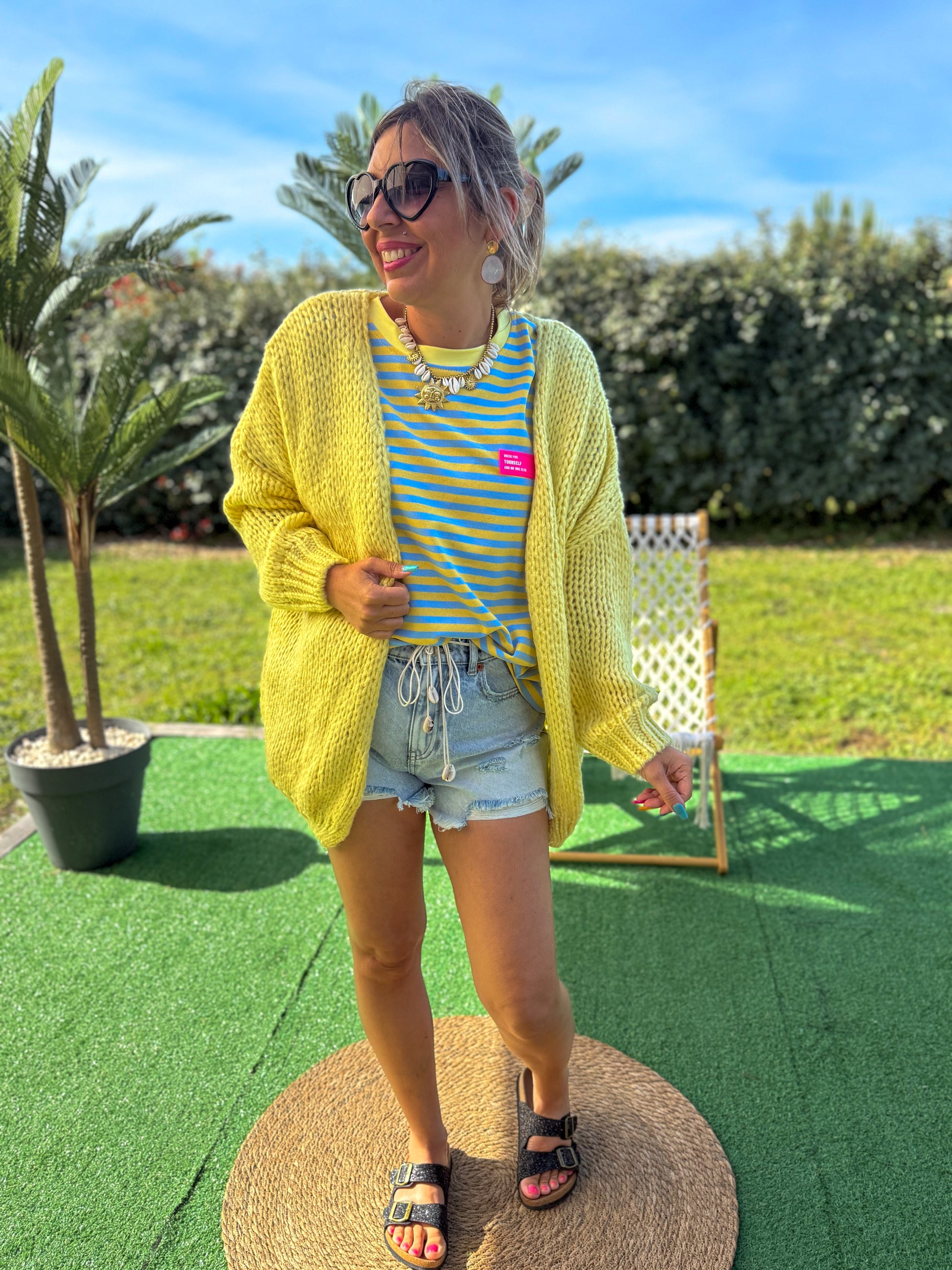 Lumineux et solaire, ce gilet jaune est un vrai coup de cœur de la saison ! On aime sa maille cocooning et sa couleur vitaminée, à associer avec un jean ou un short en denim pour un look casual et joyeux.