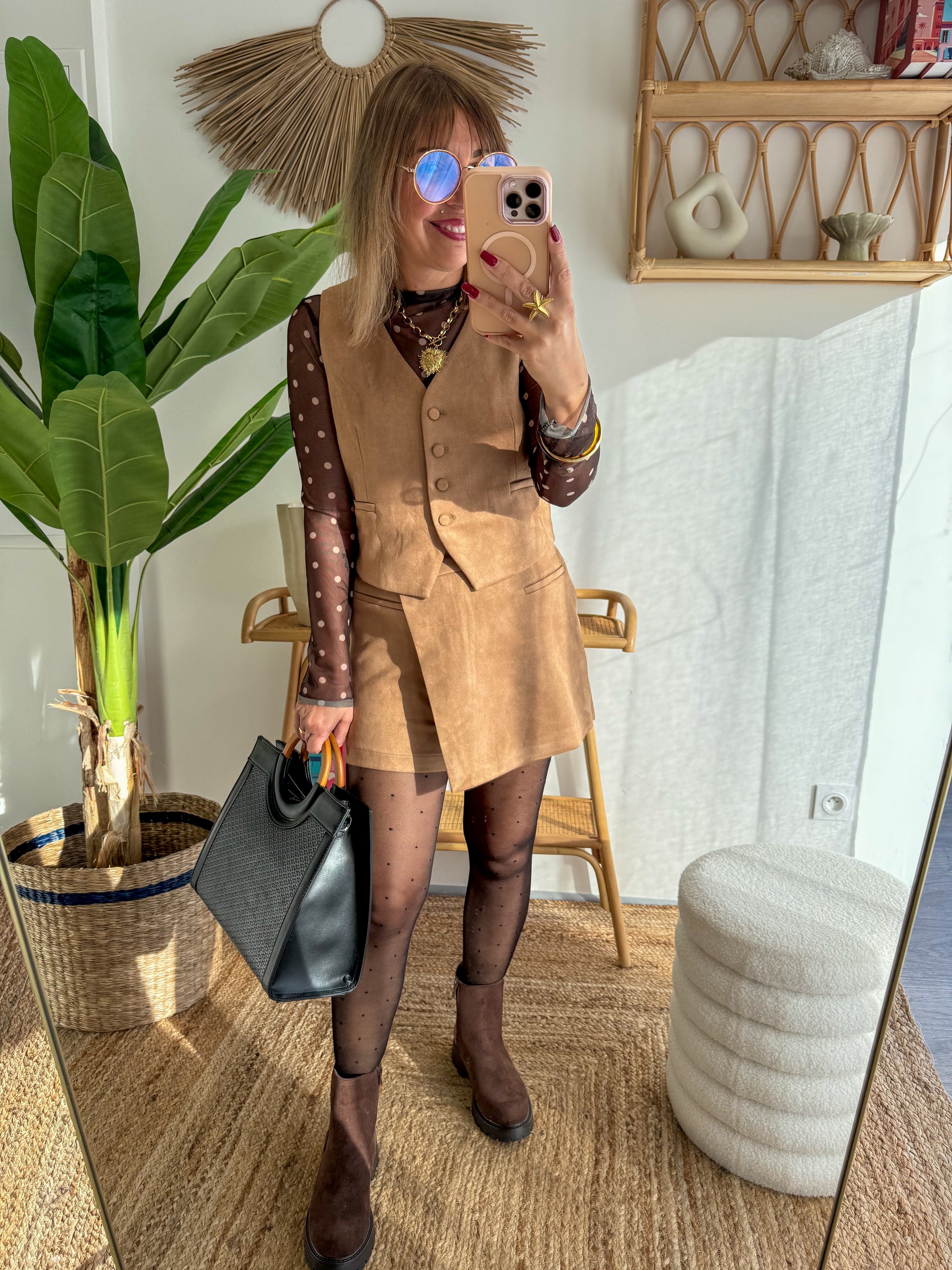 - Coloris : camel chaud et élégant