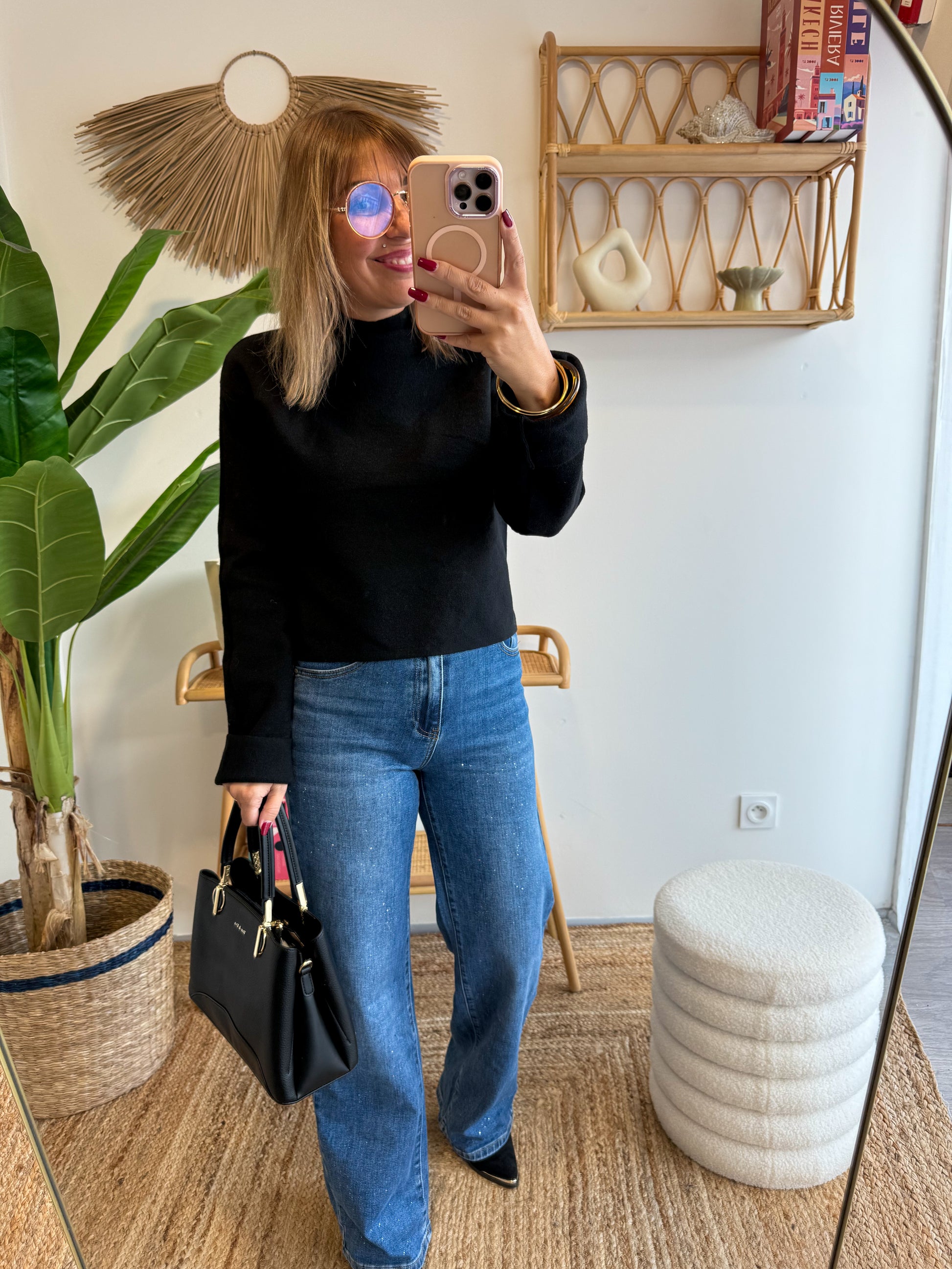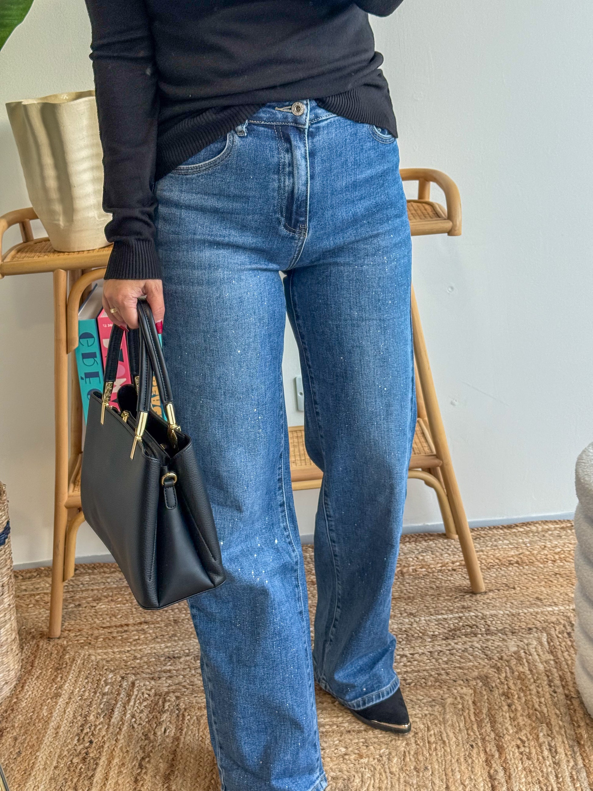 Un classique revisité : le Jean Paillettes associe confort et originalité avec ses délicats reflets scintillants. Sa coupe droite légèrement évasée met en valeur la silhouette tout en restant agréable à porter au quotidien. Idéal pour twister vos looks basiques avec une touche chic subtile.