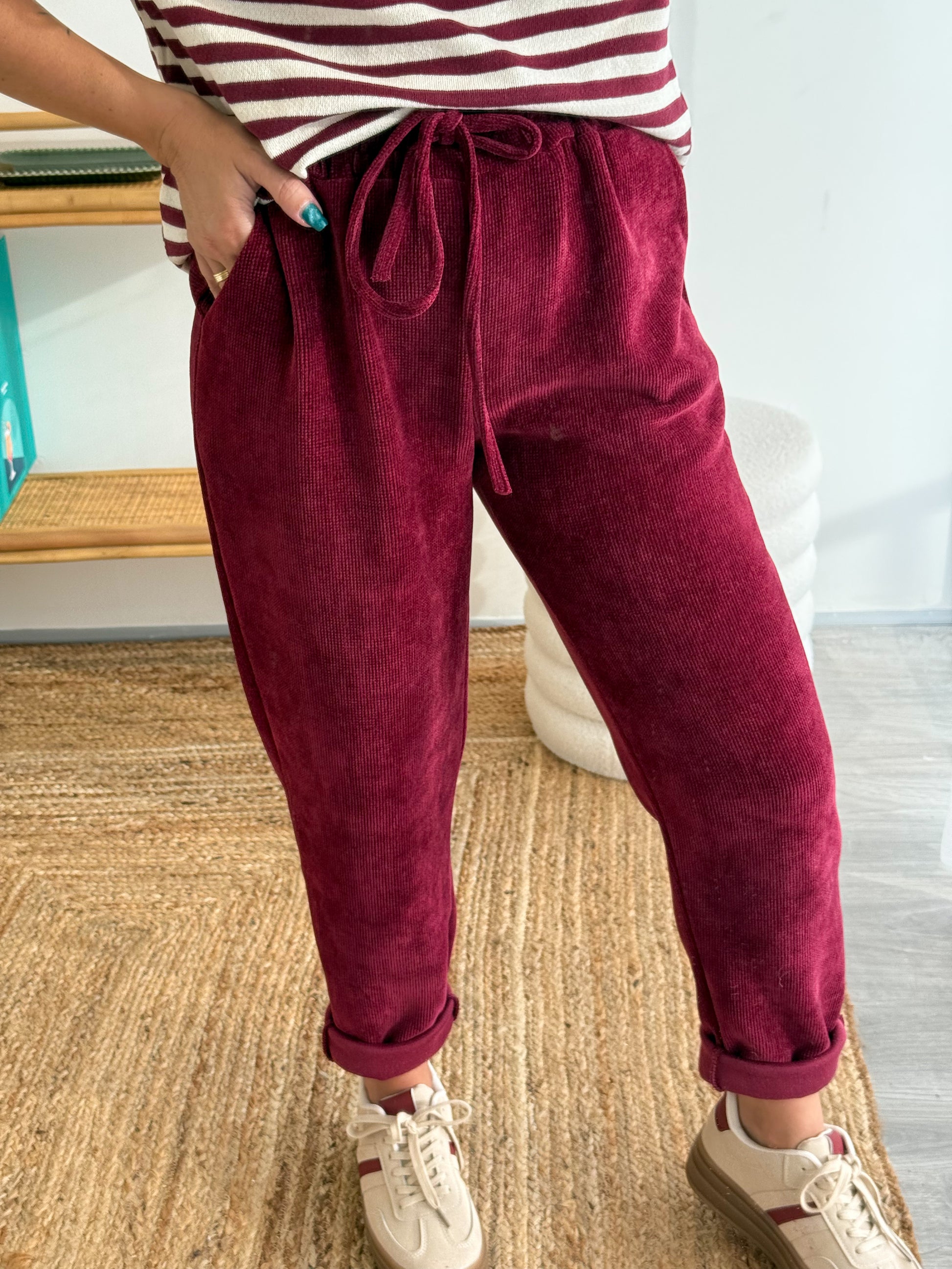 - Jogging en velours côtelé bordeaux