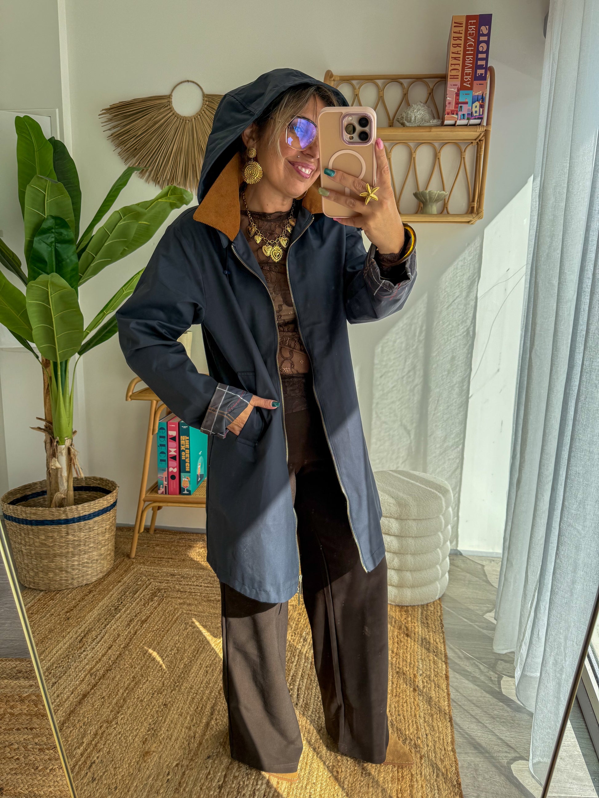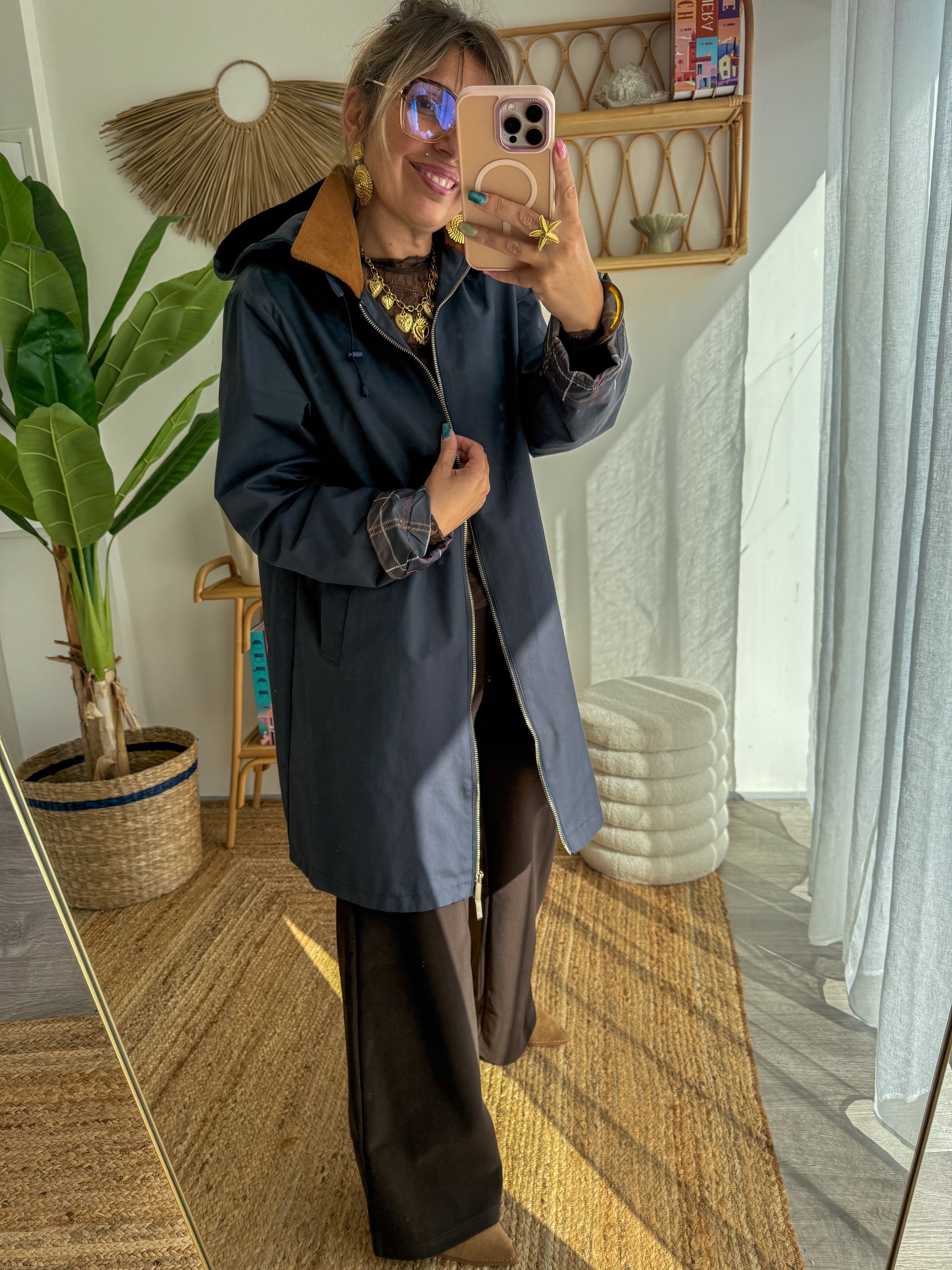 - Intérieur col en suédine camel, ultra tendance.