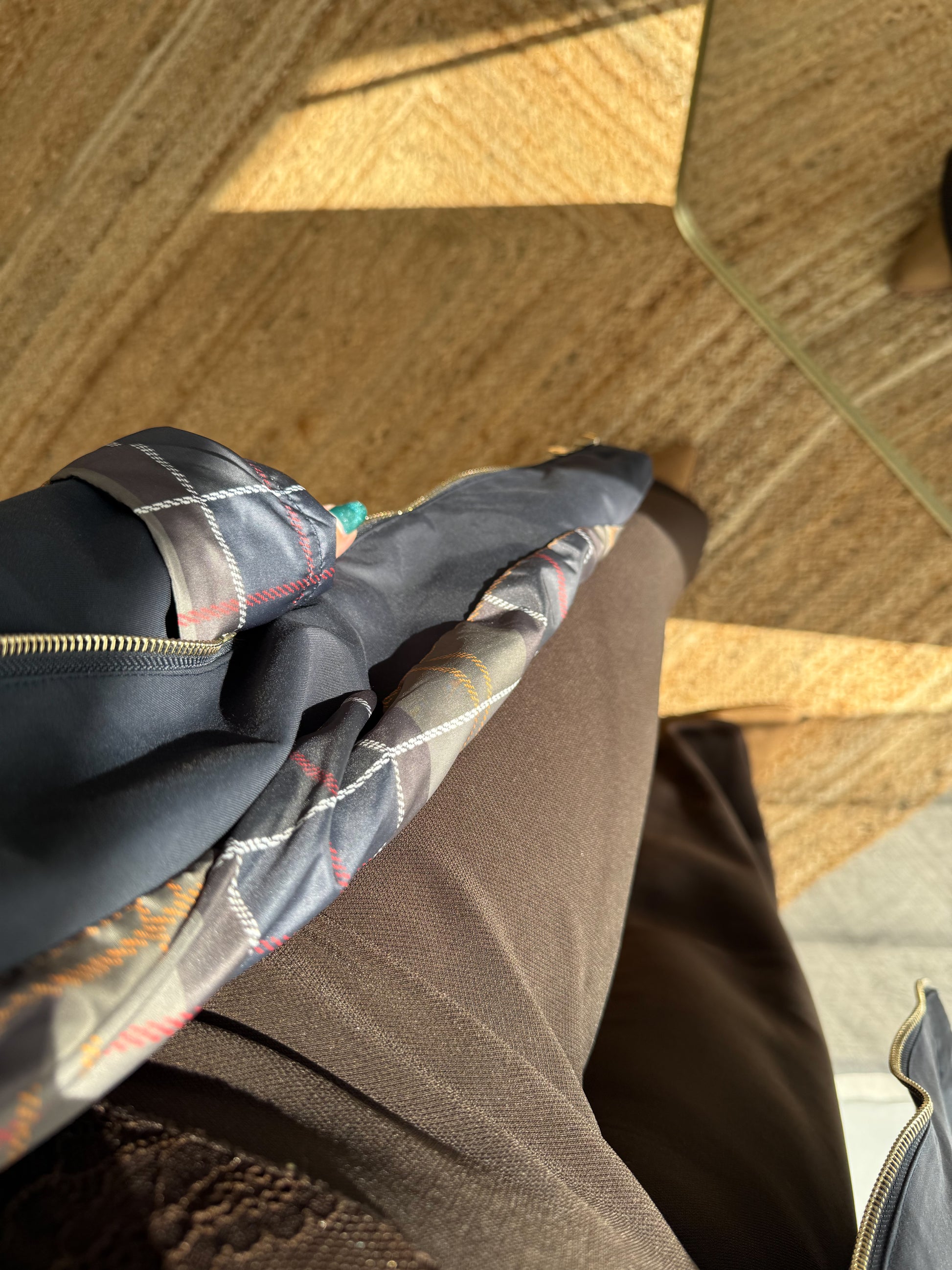 - Revers de manches à carreaux discrets, pour une touche british élégante.
