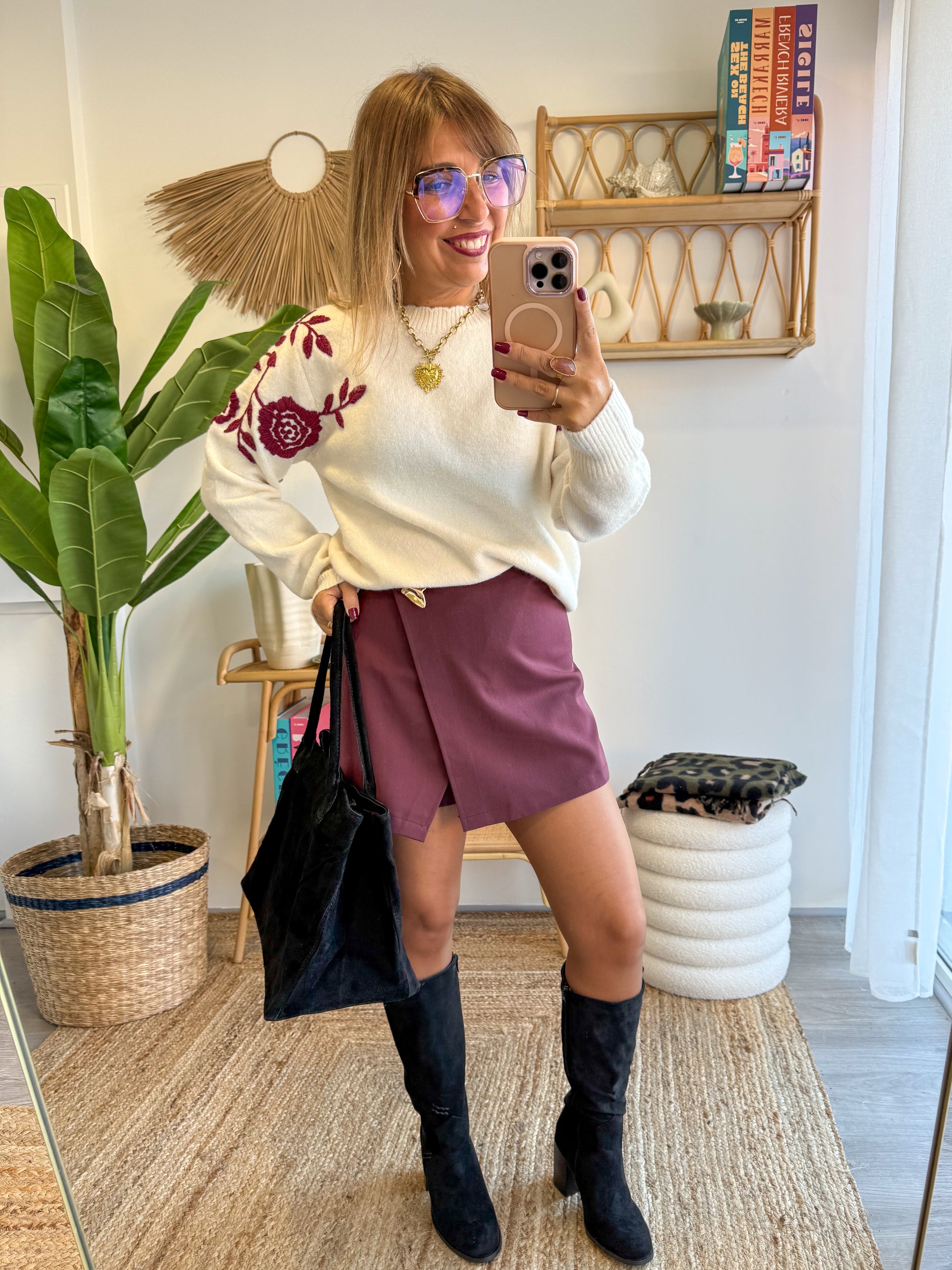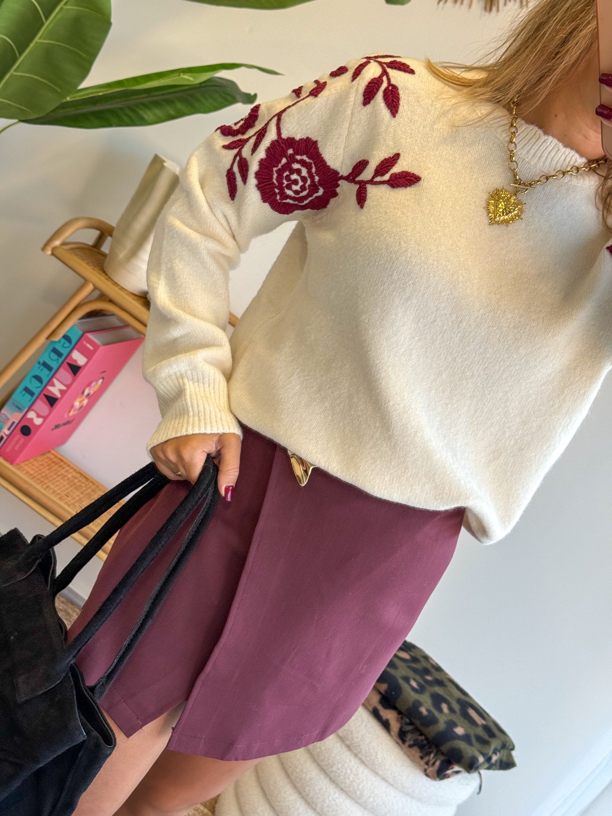 Le pull Erica séduit par ses jolis détails fleuris brodés sur les épaules et ses teintes élégantes qui réchauffent la saison. Sa maille moelleuse offre un confort absolu tout en apportant une touche romantique à vos tenues du quotidien.