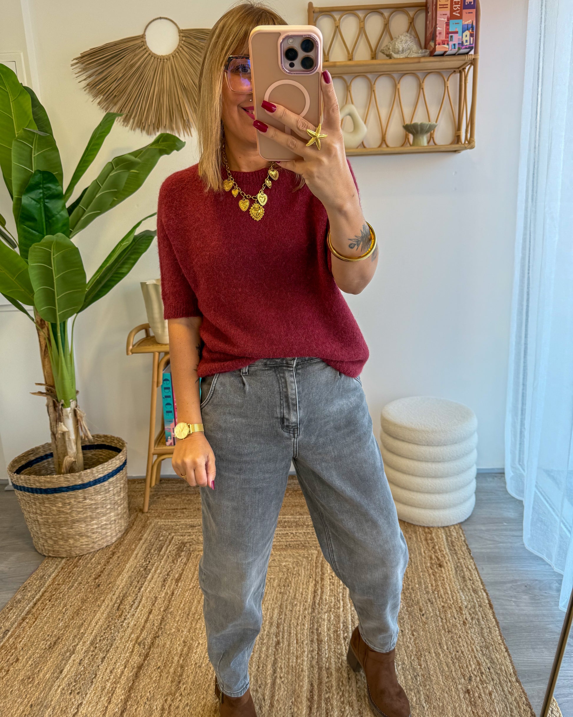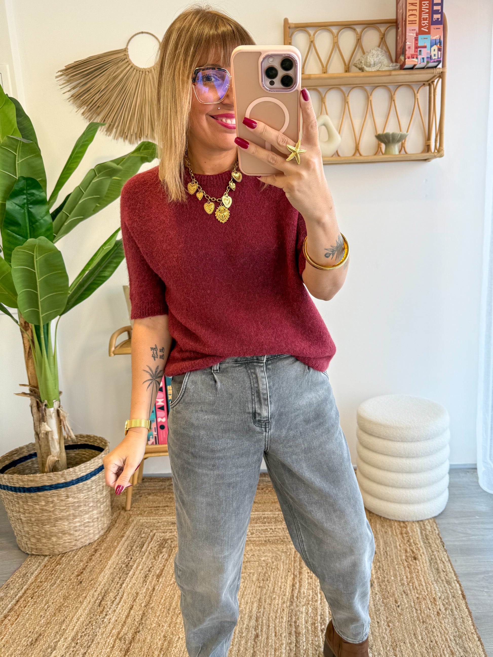 Élégant et intemporel, ce pull en maille douce est la pièce idéale pour allier confort et style au quotidien. Ses manches courtes et son col rond classique lui donnent une allure moderne, facile à associer avec toutes vos tenues.
