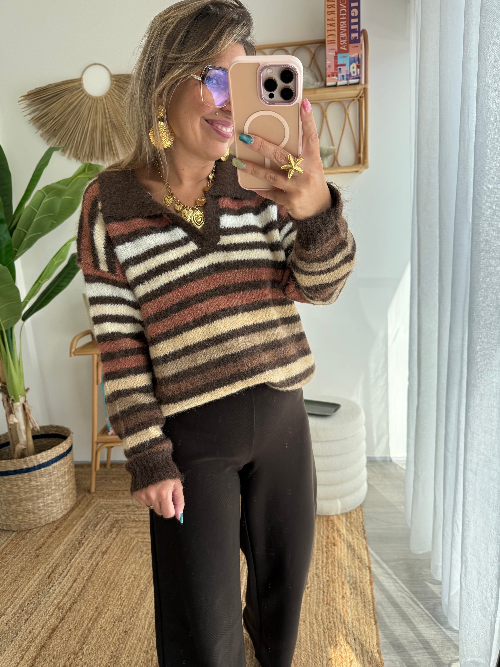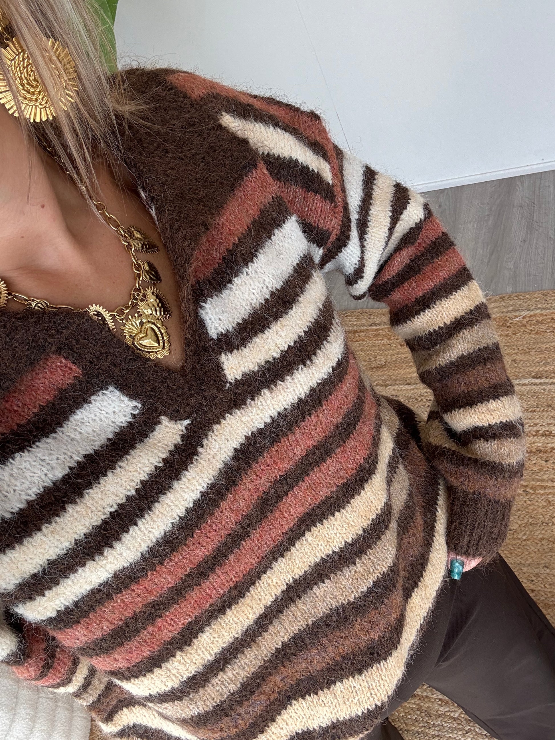 - avec des rayures aux jolis tons choco et camel