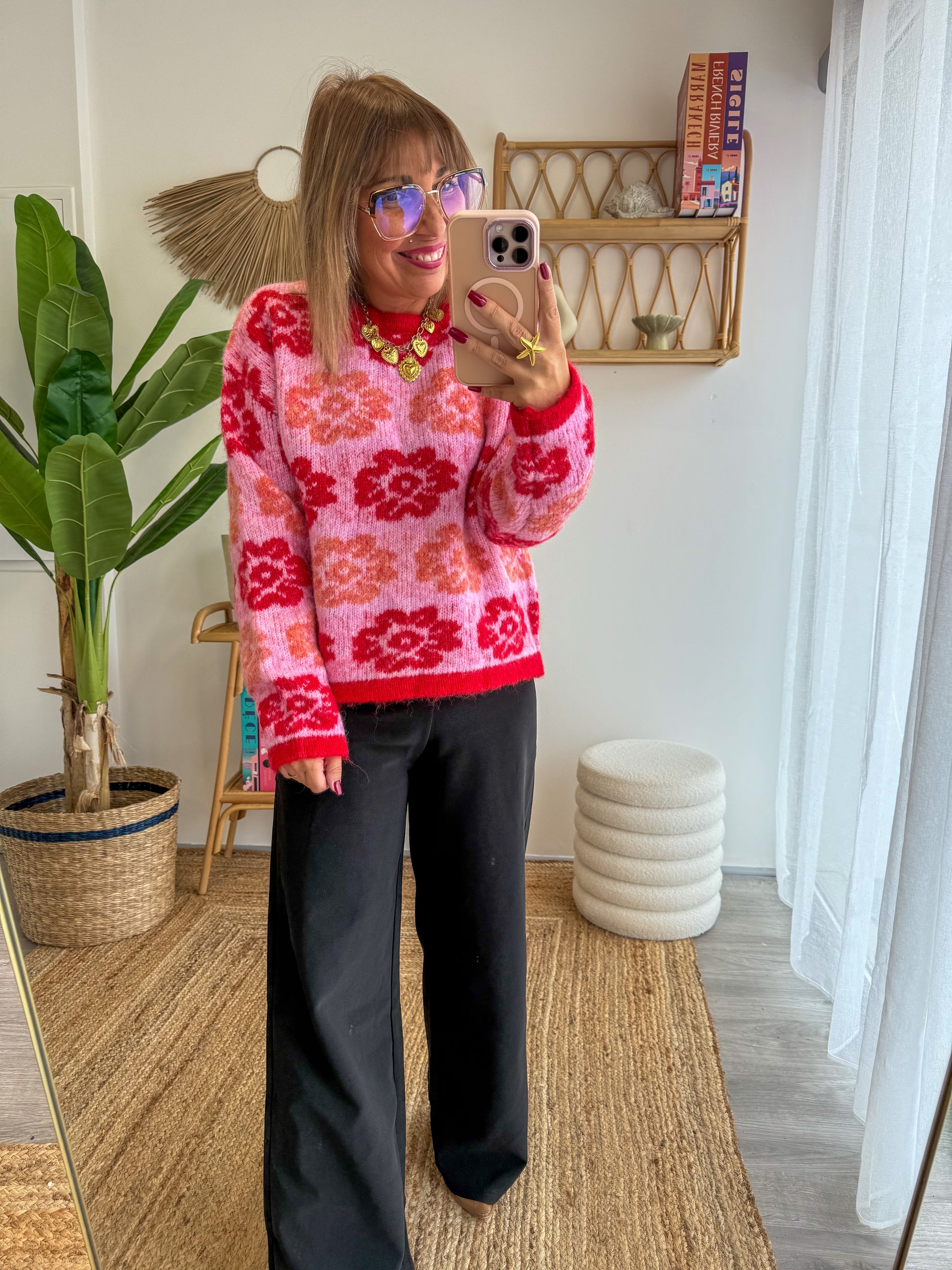 Craquez pour ce pull fleuri rose et rouge qui allie confort et féminité. Son motif floral rétro apporte une touche joyeuse et tendance à votre look. Avec sa maille douce et chaude, il se porte aussi bien au quotidien qu’en soirée décontractée.