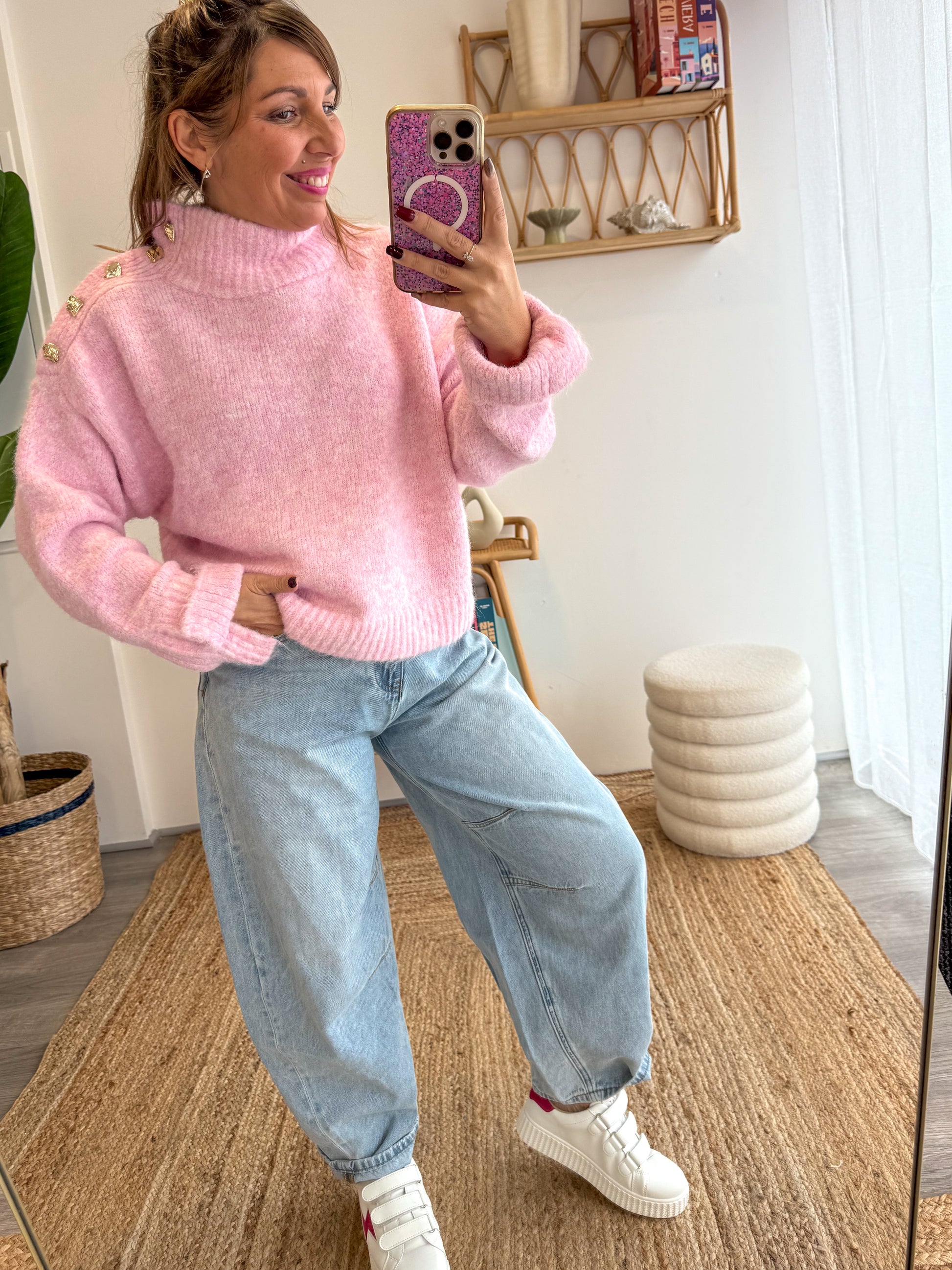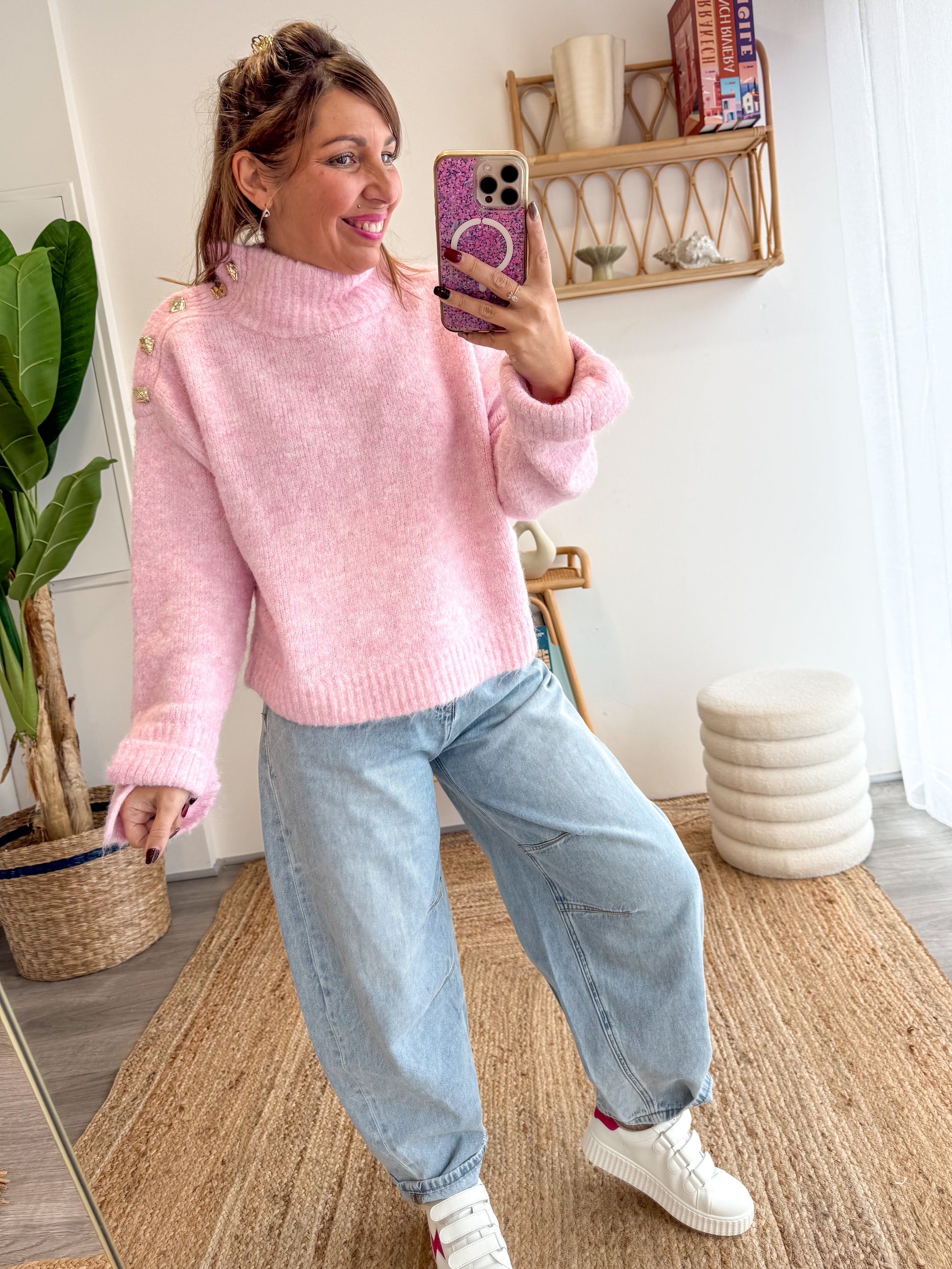 Le Pull VANILLA séduit par sa teinte et ses détails boutons bijoux sur l’épaule qui apportent une touche chic et féminine. Sa maille moelleuse et son col montant en font une pièce aussi confortable qu’élégante, idéale pour réchauffer tes looks avec style.