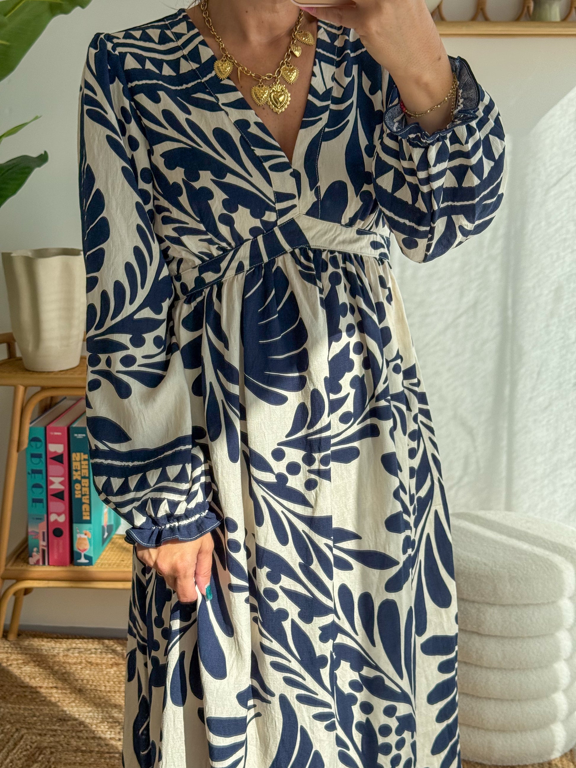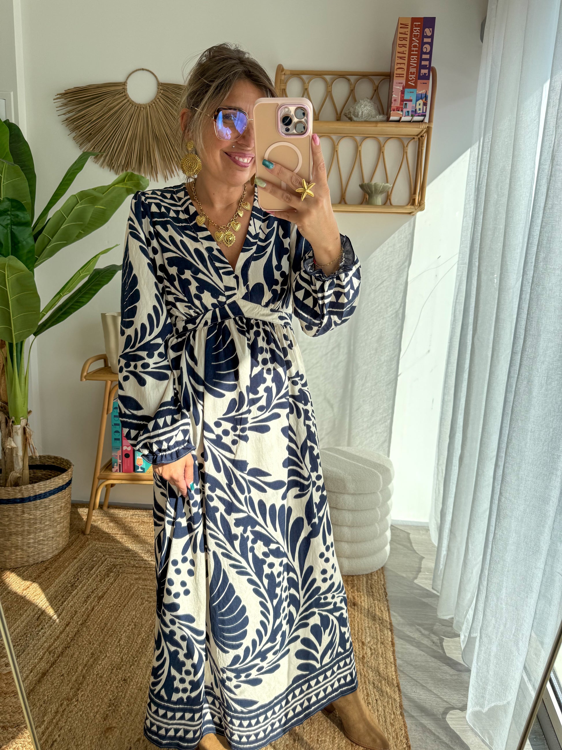 Plongez dans l’élégance avec notre robe longue Floralis, une pièce forte qui marie confort et style. Son imprimé feuillage bordeaux sur fond écru apporte une touche bohème chic, parfaite pour la rentrée.