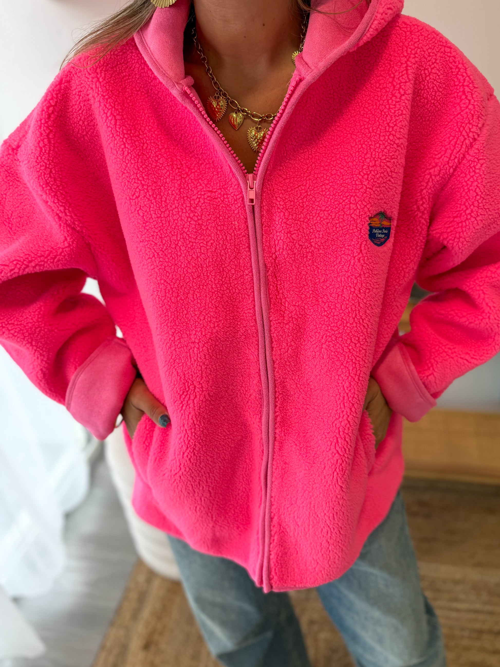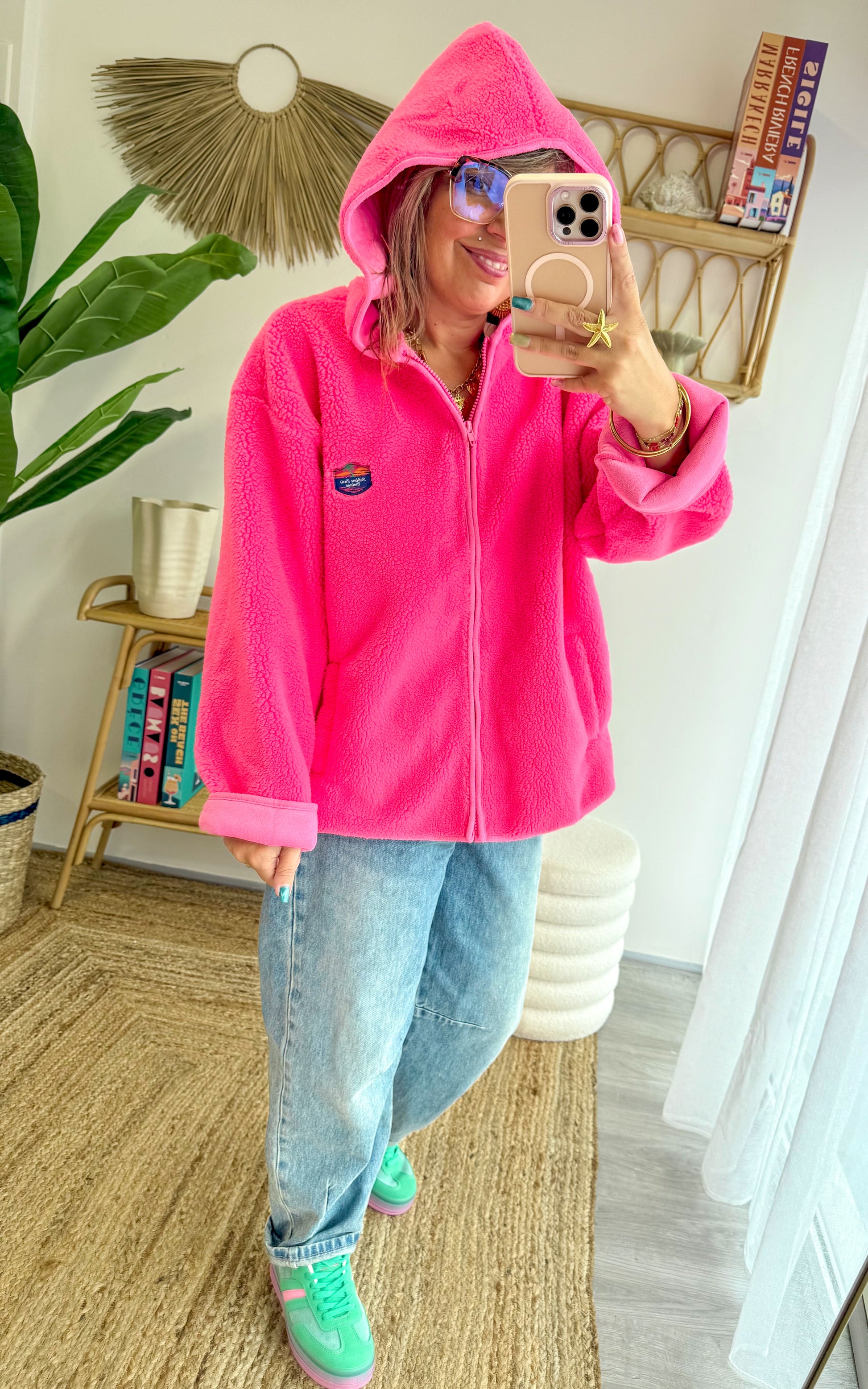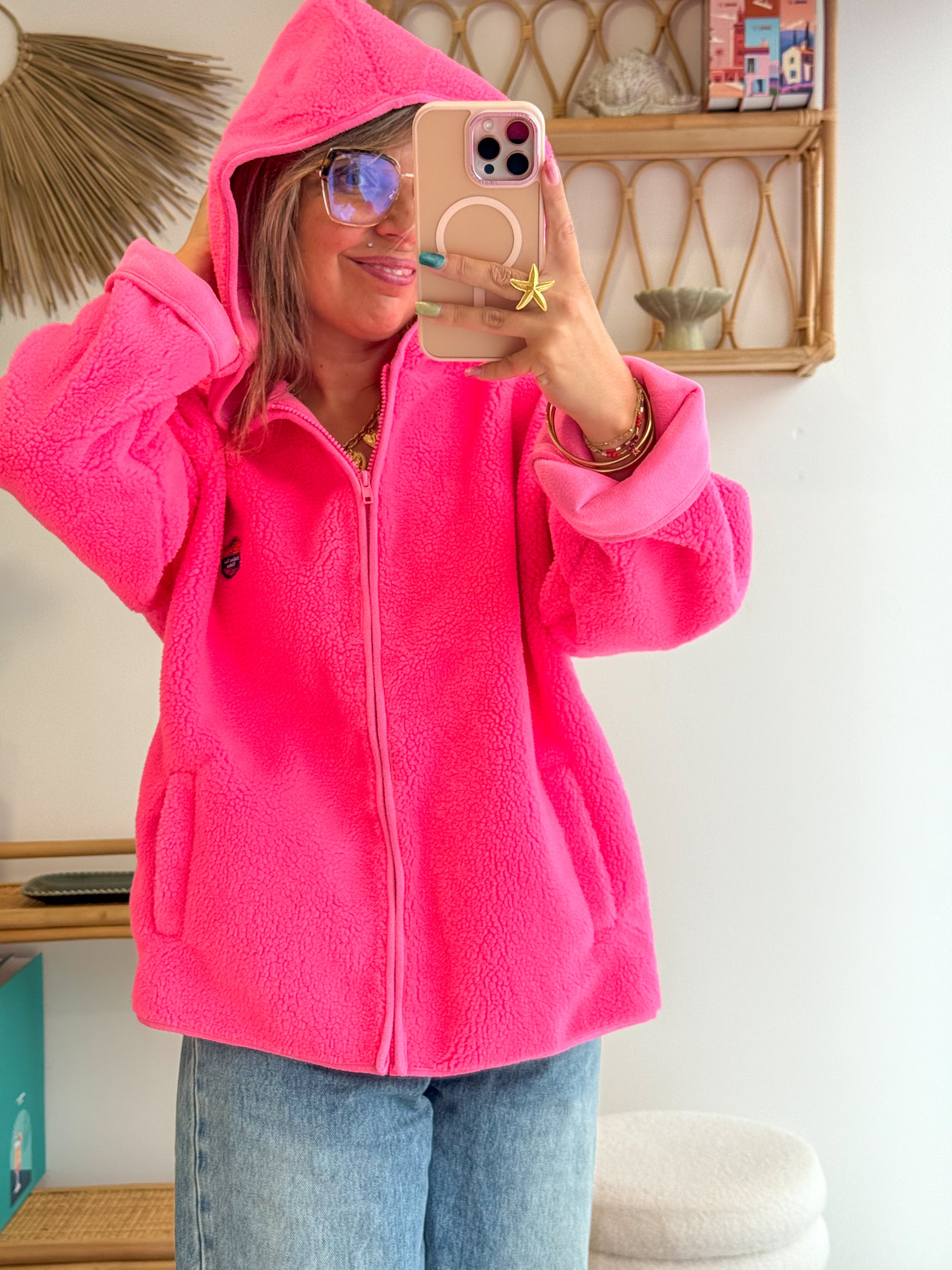Ultra confortable, cette polaire zippée à capuche séduit par son coloris rose éclatant, fun et tendance, parfait pour illuminer vos looks casual. Avec sa coupe droite et son tissu doux, elle est idéale aussi bien pour vos sorties en extérieur que pour vos moments cocooning.
