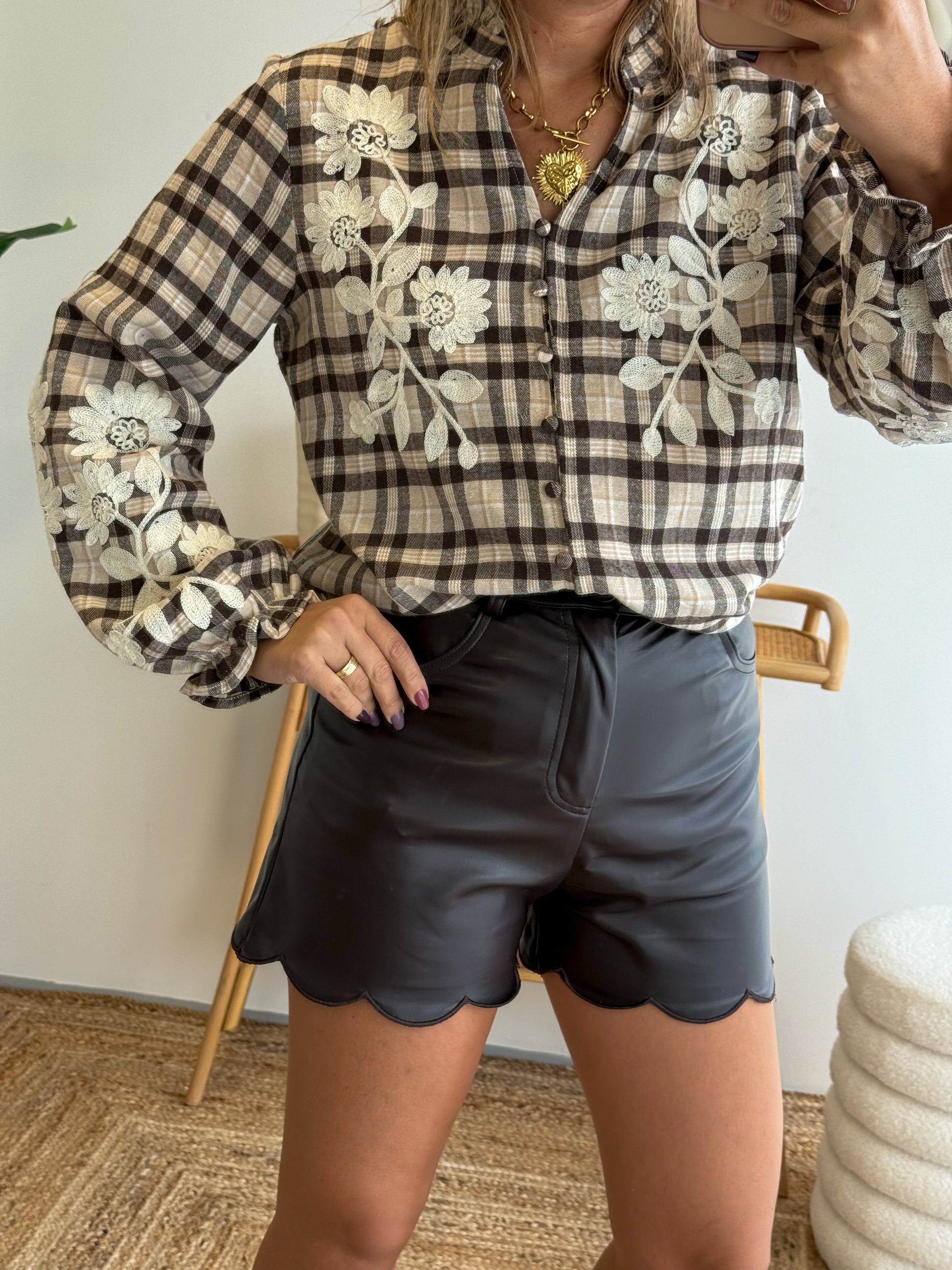 Le short Nahia est la pièce parfaite pour apporter du style et un twist féminin à tes looks d’automne-hiver. Sa coupe en simili-cuir doux et souple, associée à sa finition bas festonné, crée une silhouette moderne, élégante et légèrement glamour.