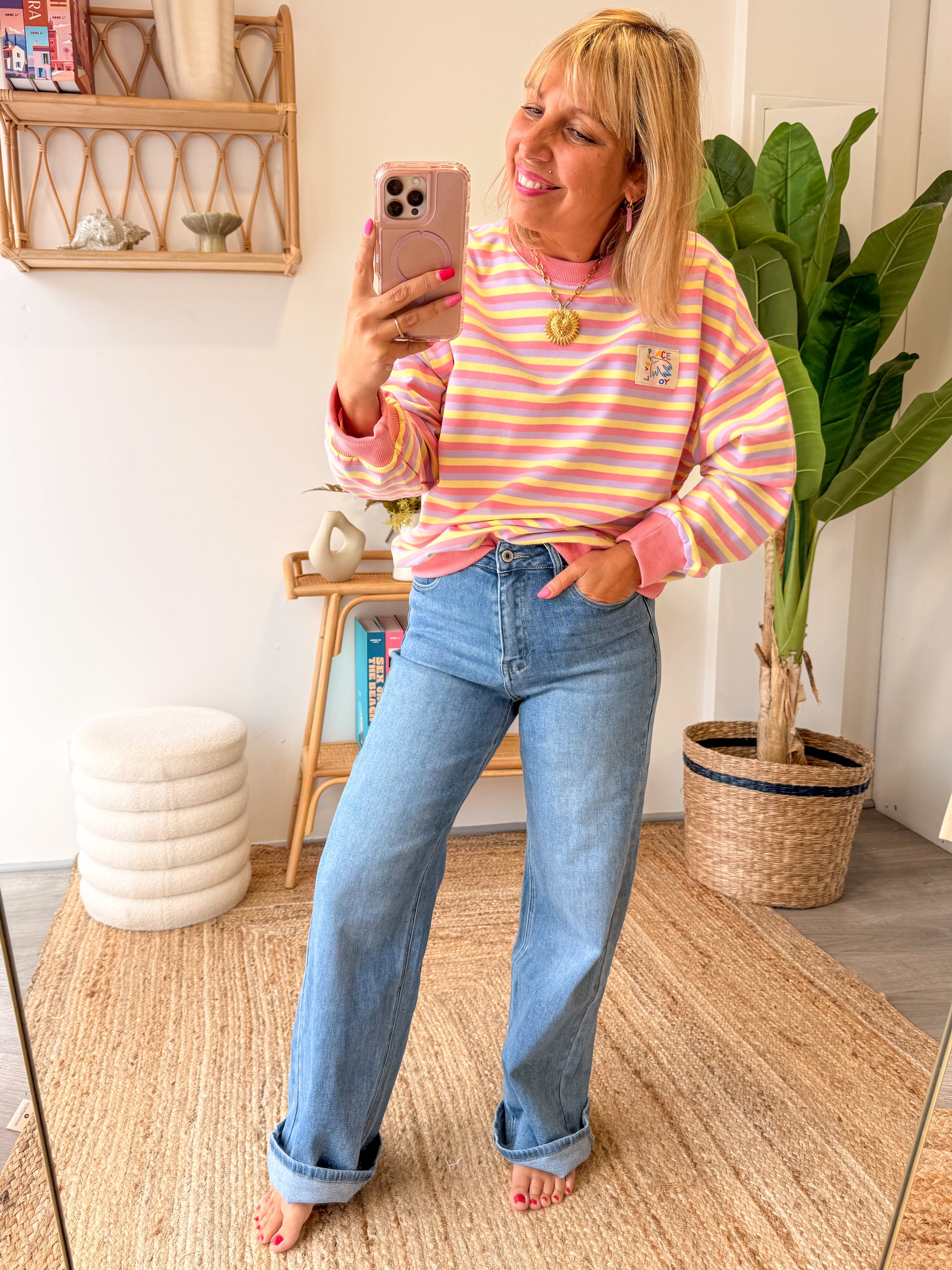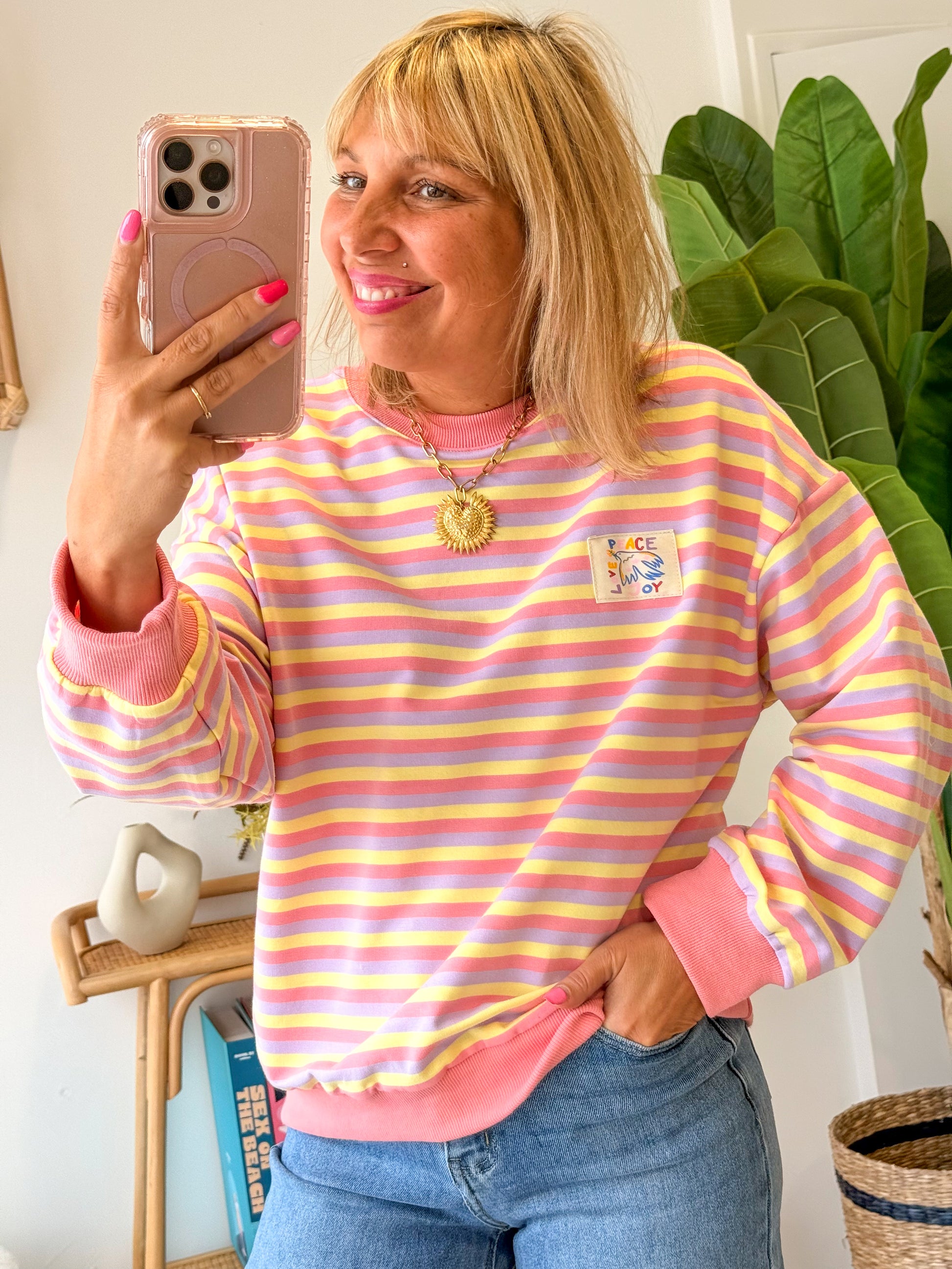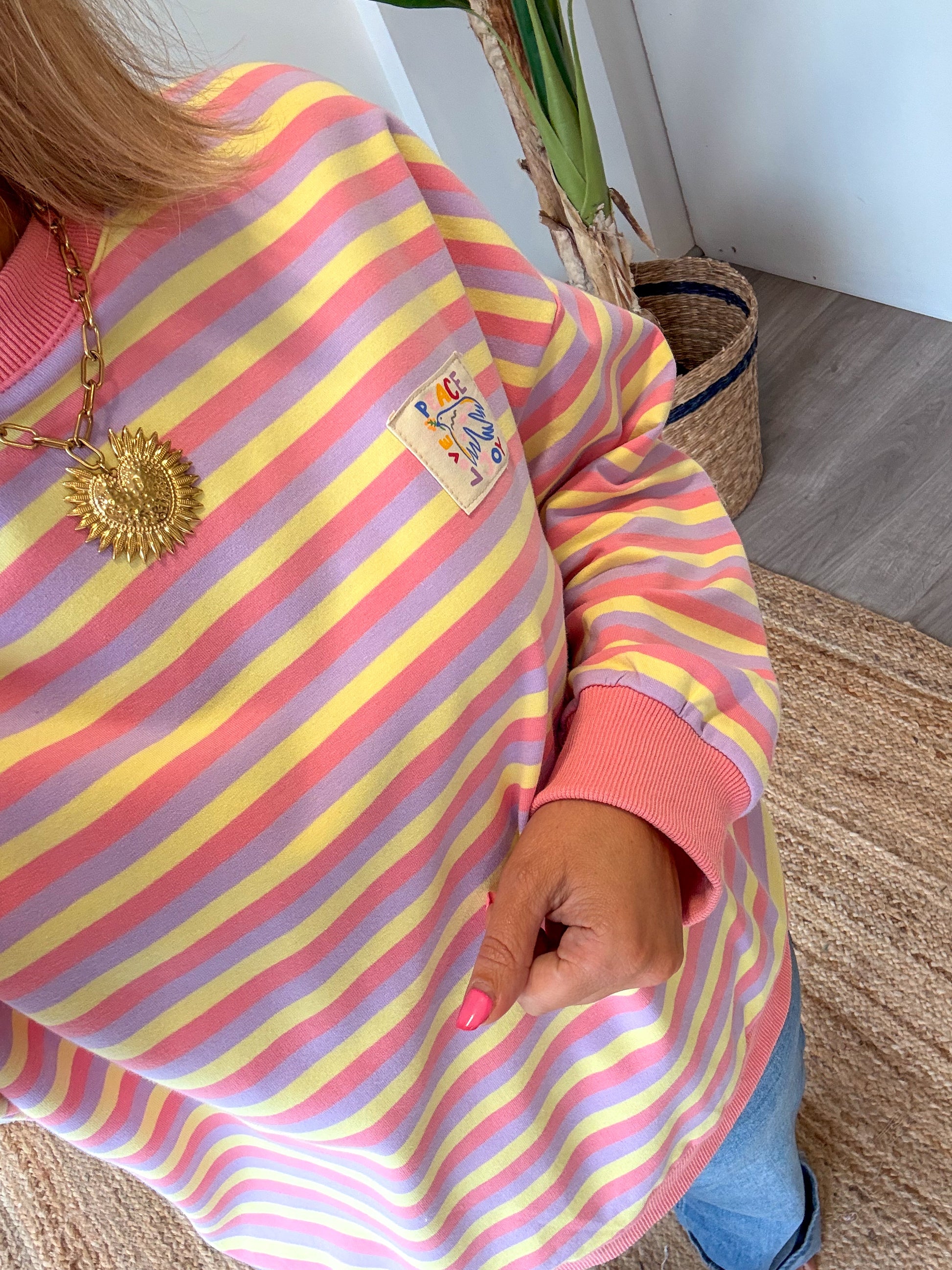 Apporte une touche de bonne humeur à ton dressing avec ce sweat aux rayures pastel ultra tendance. Ses couleurs douces rose, jaune et lilas illuminent la silhouette et donnent instantanément un look fun et décontracté.