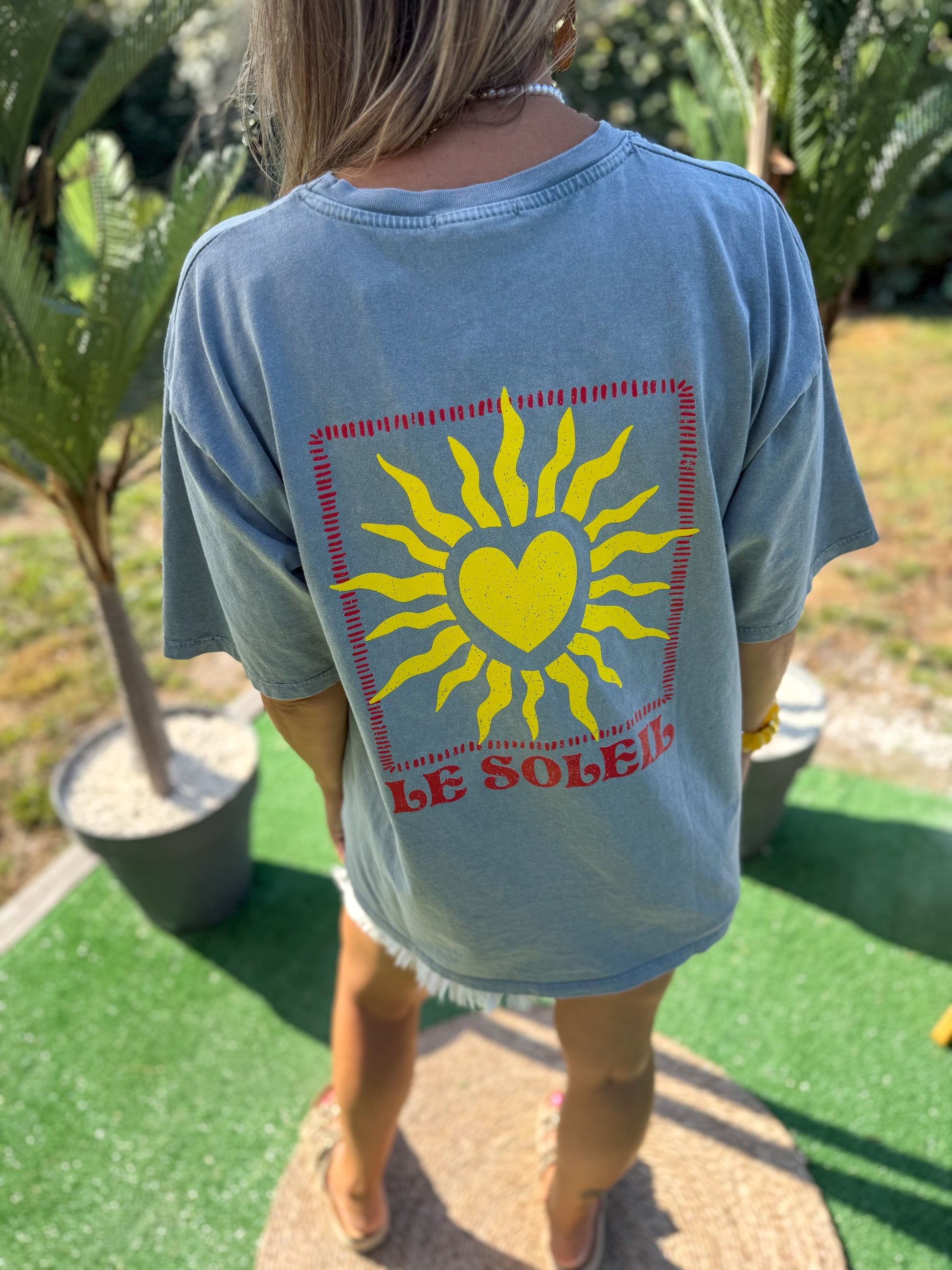 Laissez entrer le soleil dans votre dressing avec ce t-shirt oversize “Le Soleil” au style affirmé et ultra feel good. Son imprimé cœur & soleil à l’avant et dans le dos donne une touche rétro solaire à vos looks estivaux.