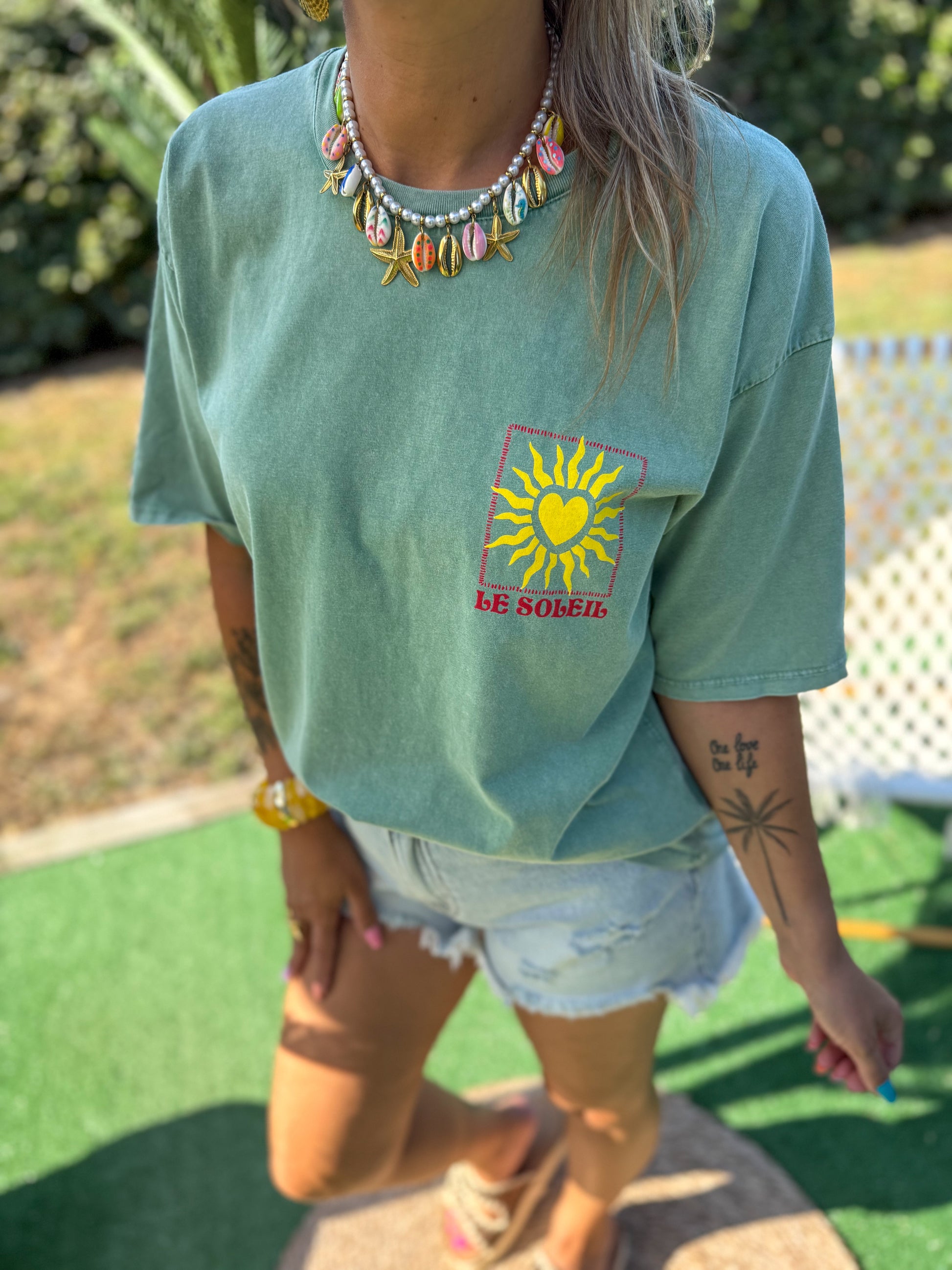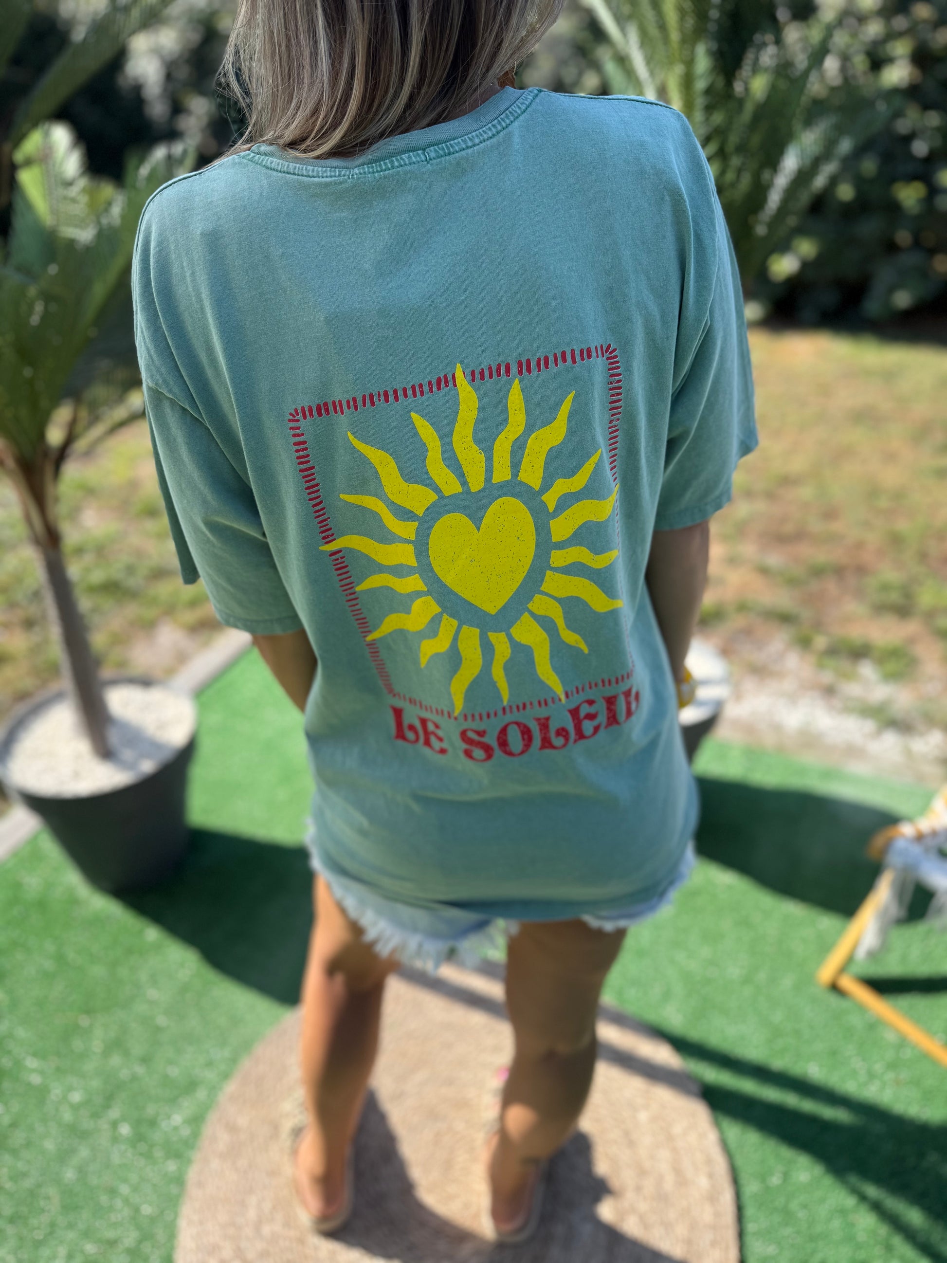 Laissez entrer le soleil dans votre dressing avec ce t-shirt oversize “Le Soleil” au style affirmé et ultra feel good. Son imprimé cœur & soleil à l’avant et dans le dos donne une touche rétro solaire à vos looks estivaux.