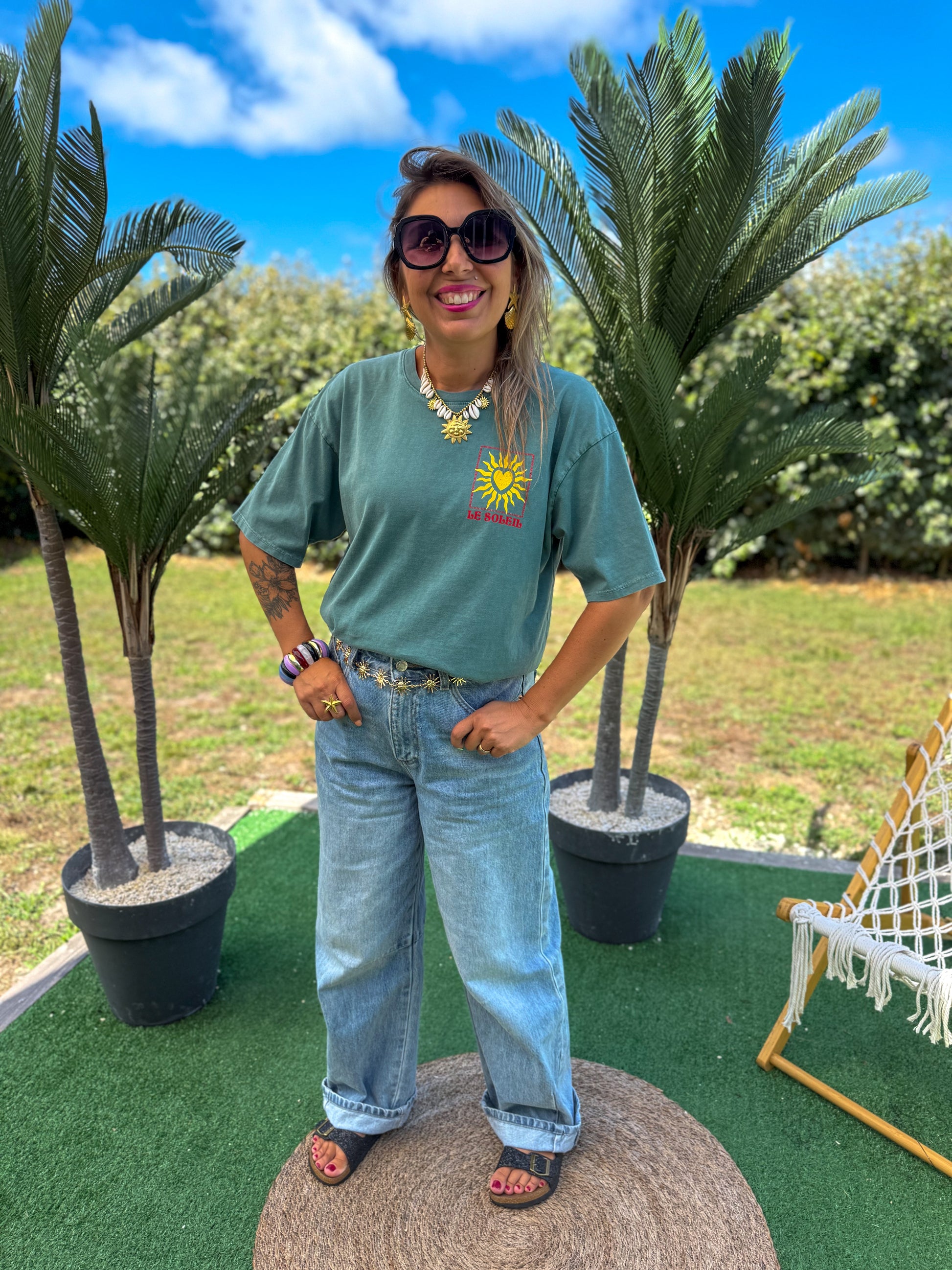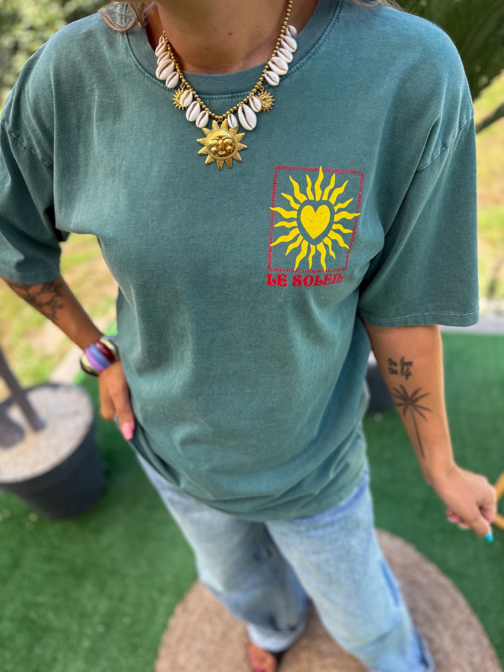 Laissez entrer le soleil dans votre dressing avec ce t-shirt oversize “Le Soleil” au style affirmé et ultra feel good. Son imprimé cœur & soleil à l’avant et dans le dos donne une touche rétro solaire à vos looks estivaux.