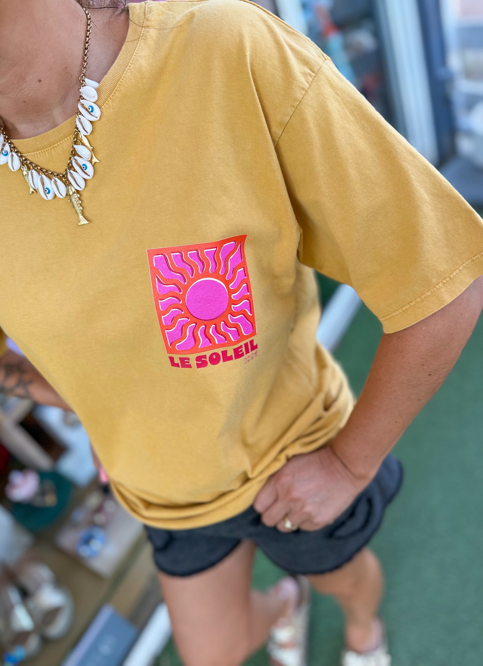 Apportez une touche de bonne humeur et de soleil à votre look avec notre t-shirt oversize “Le Soleil”. Sa coupe ample ultra-confort et sa couleur moutarde vibrante en font la pièce idéale pour un style décontracté et tendance.