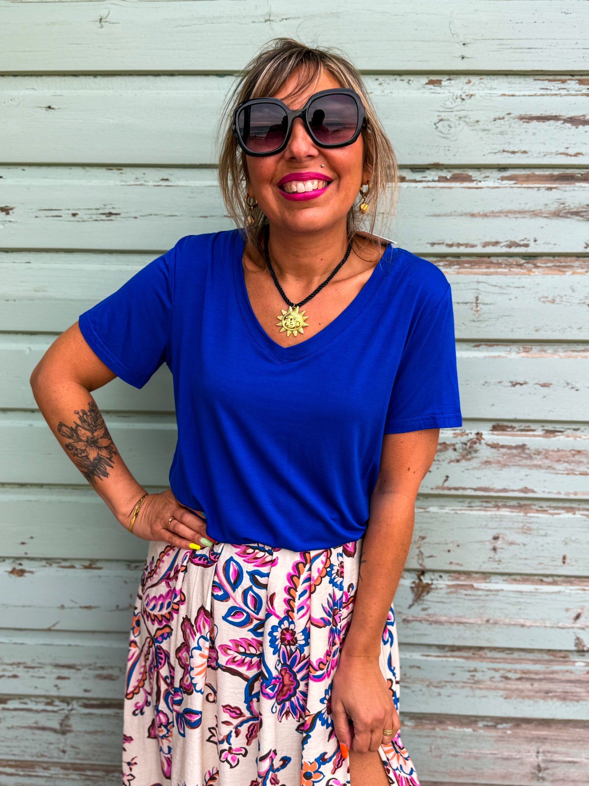 Laissez-vous séduire par le Top Alizé, une pièce basique et élégante qui s’adapte à toutes vos tenues. Sa coupe fluide et son tissu doux offrent un confort absolu, tandis que son joli coloris bleu roi apporte une touche de peps et de féminité. Un incontournable du dressing, à associer aussi bien avec une jupe bohème qu’un jean pour un look casual chic.