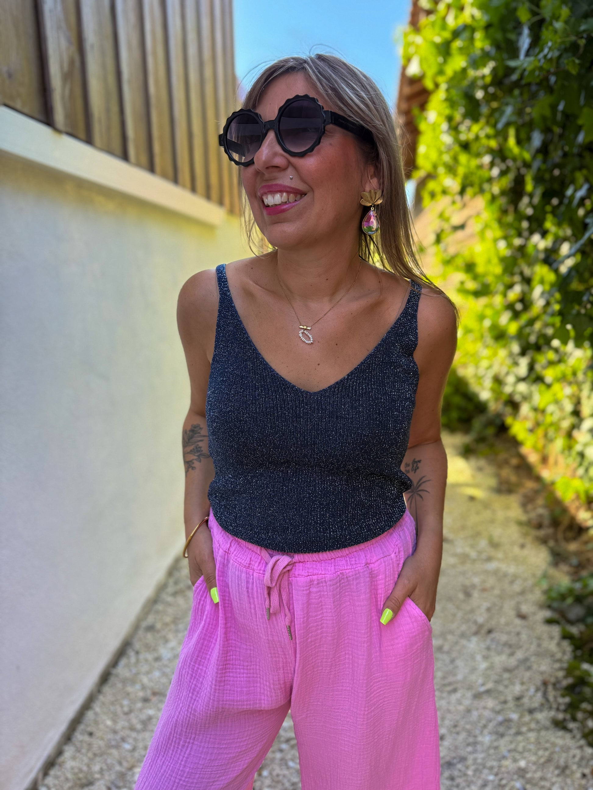 Adoptez l’élégance tout en simplicité avec notre débardeur Shine ! Son tissu délicatement scintillant capte la lumière avec subtilité pour un effet glamour sans effort.