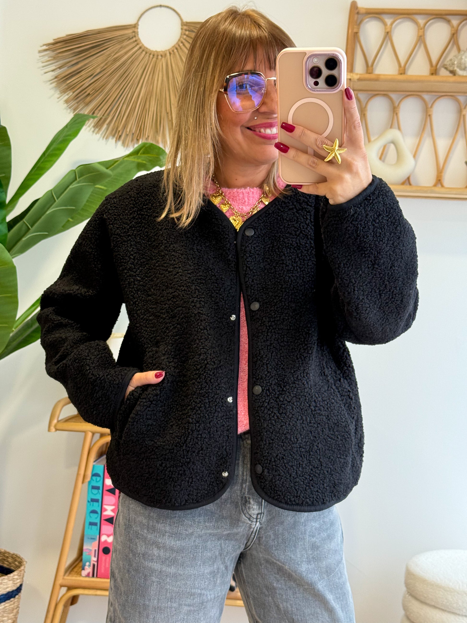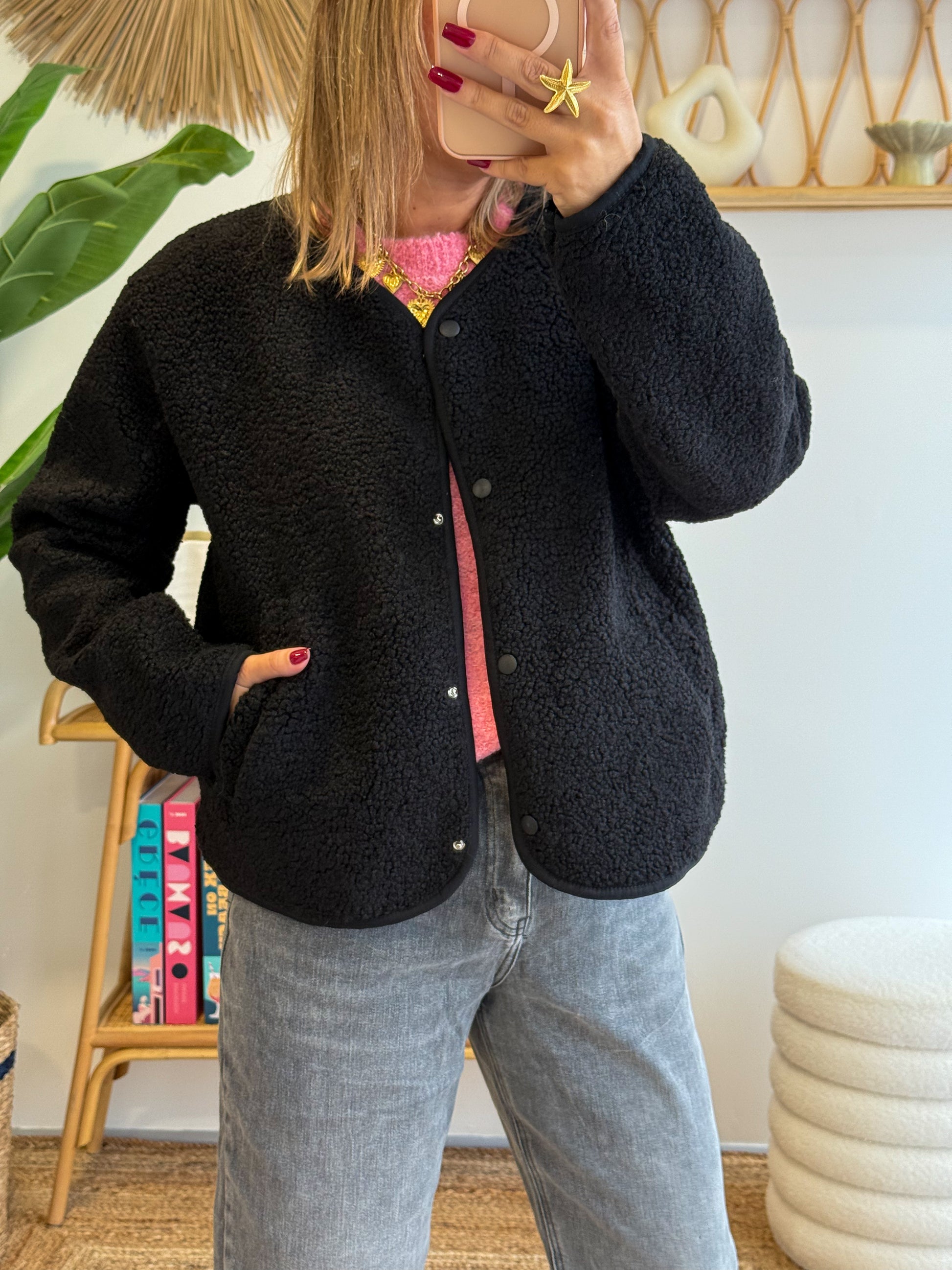 La veste FLUFFY est la pièce cocooning par excellence. Confectionnée dans une matière effet mouton toute douce, elle allie confort et tendance pour affronter les journées fraîches avec style. Sa coupe droite et son coloris écru lumineux en font un basique facile à associer et ultra cosy.